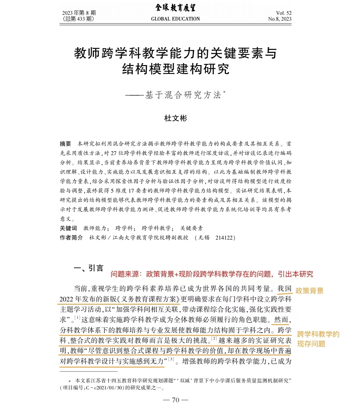 《教师跨学科教学能力的关键要素与结构模型建构研究》