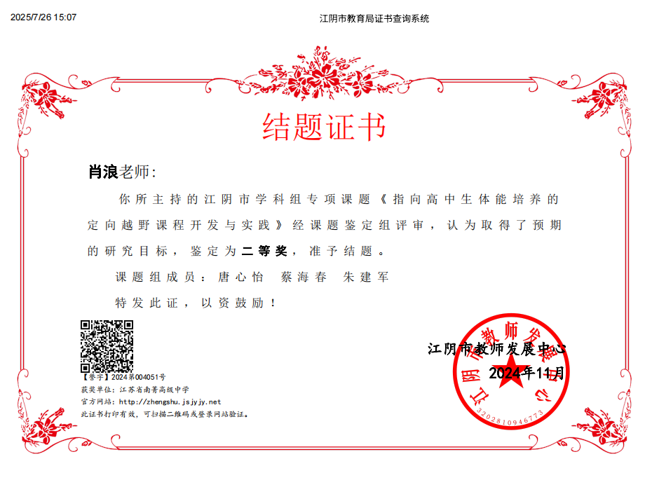 课题《指向高中生体能培养的定向越野课程开发与实践》