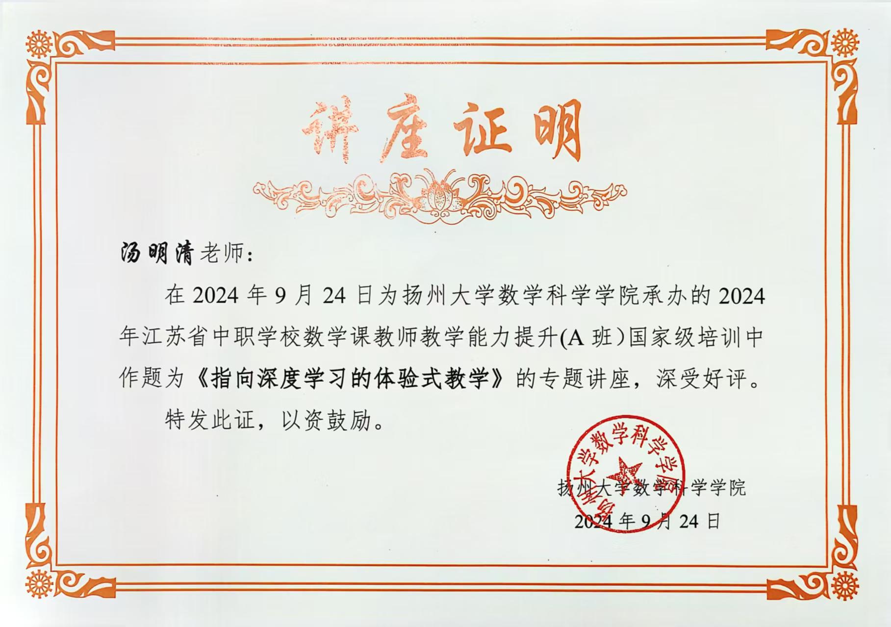 汤明清老师为省中职数学教师国家级培训作《指向深度学习的体验式教学》专题讲座