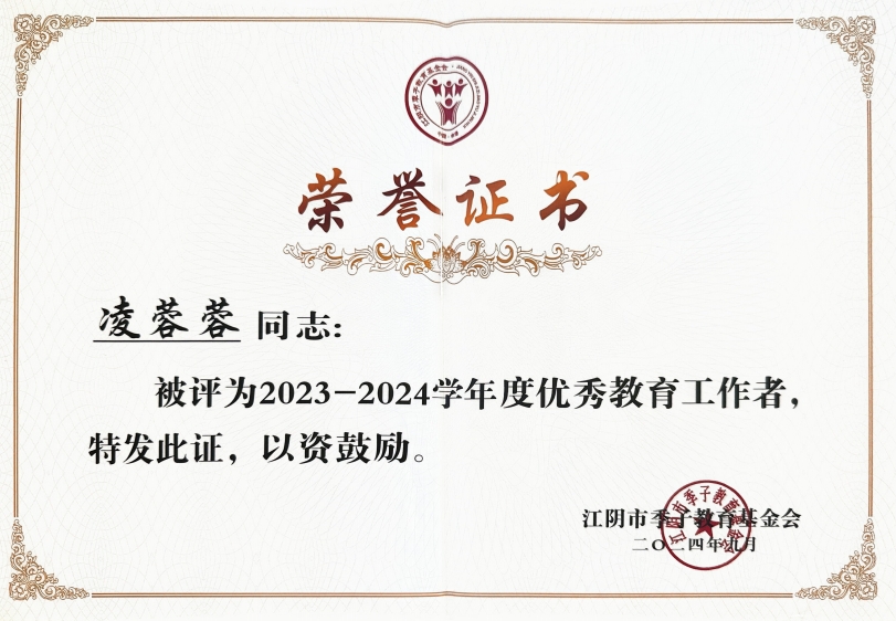凌蓉蓉老师被评为江阴市优秀教育工作者