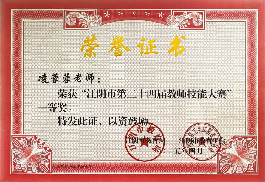 凌蓉蓉老师获江阴市教师技能大赛一等奖