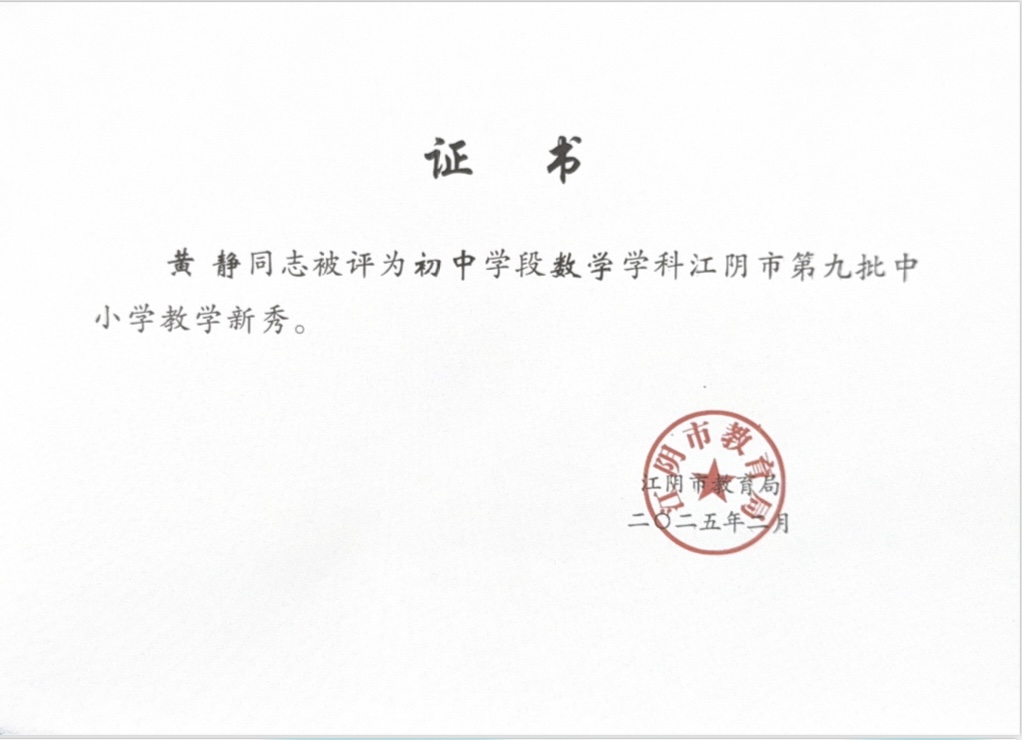 网站类目:荣誉提升情况 姓名:黄静 所在单位:江阴市教育局 荣誉类别:特级教师 荣誉级别:国家级 获得时间:2025-08-30 评比部门:
