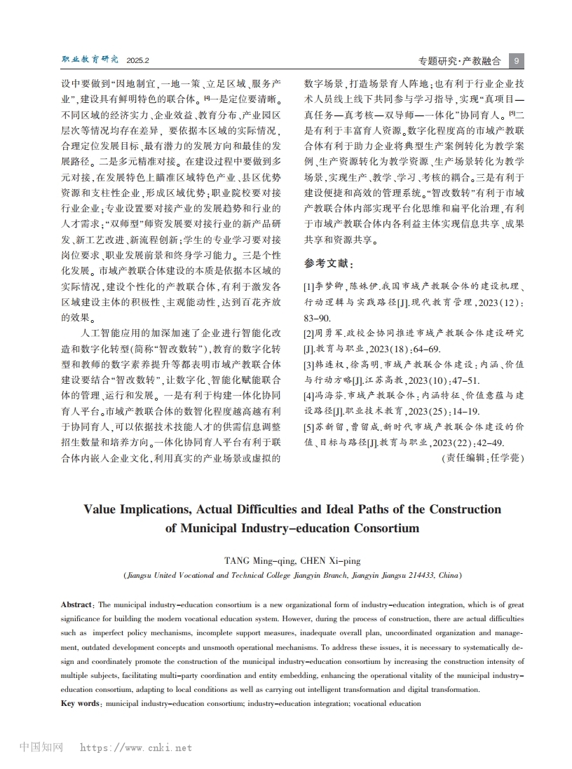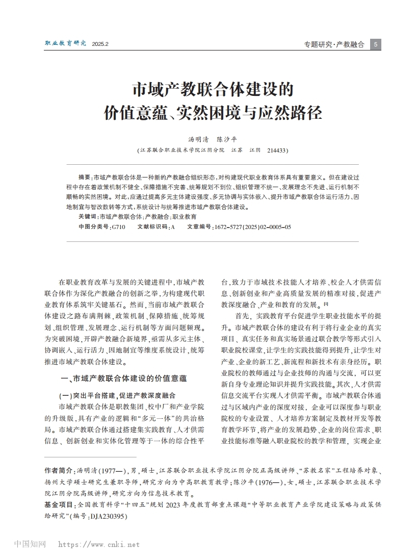 市域产教联合体建设的价值意蕴、实然困境与应然路径