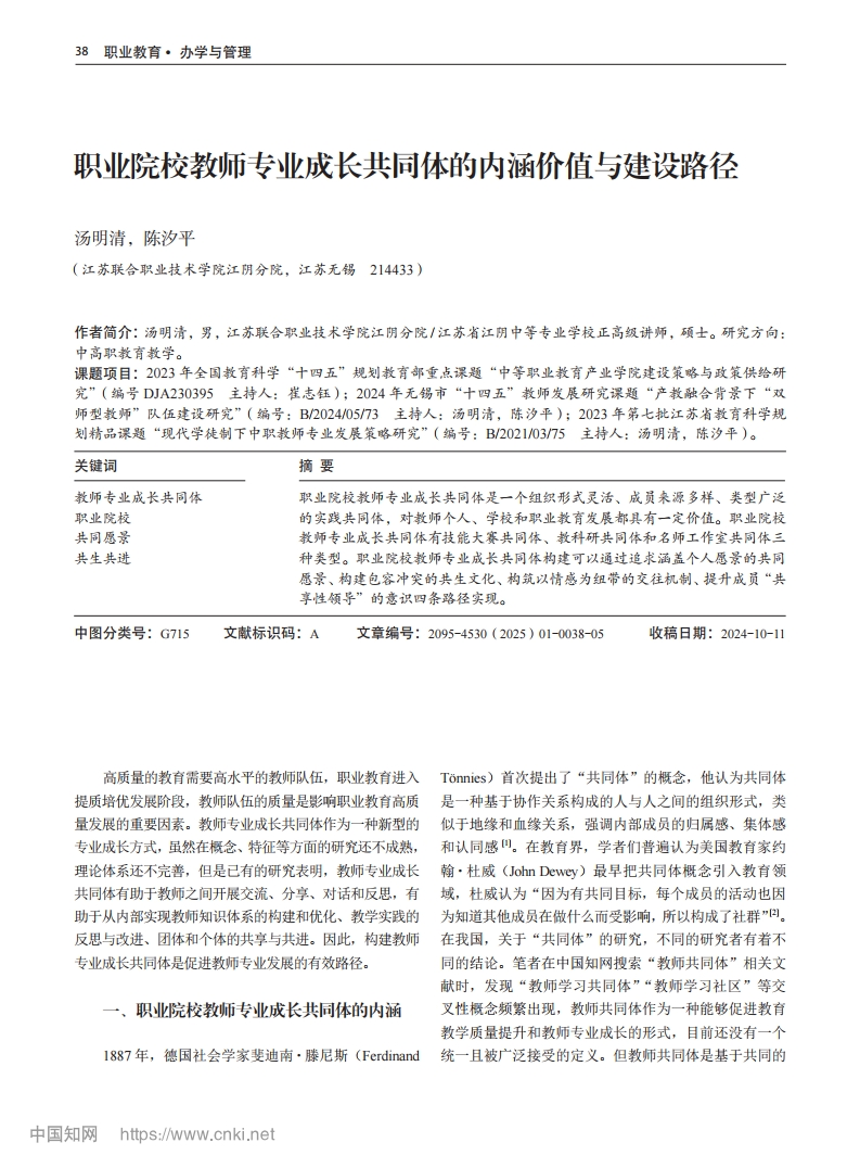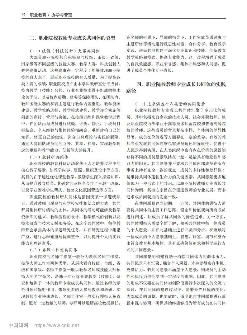 职业院校教师专业成长共同体的内涵价值与建设路径