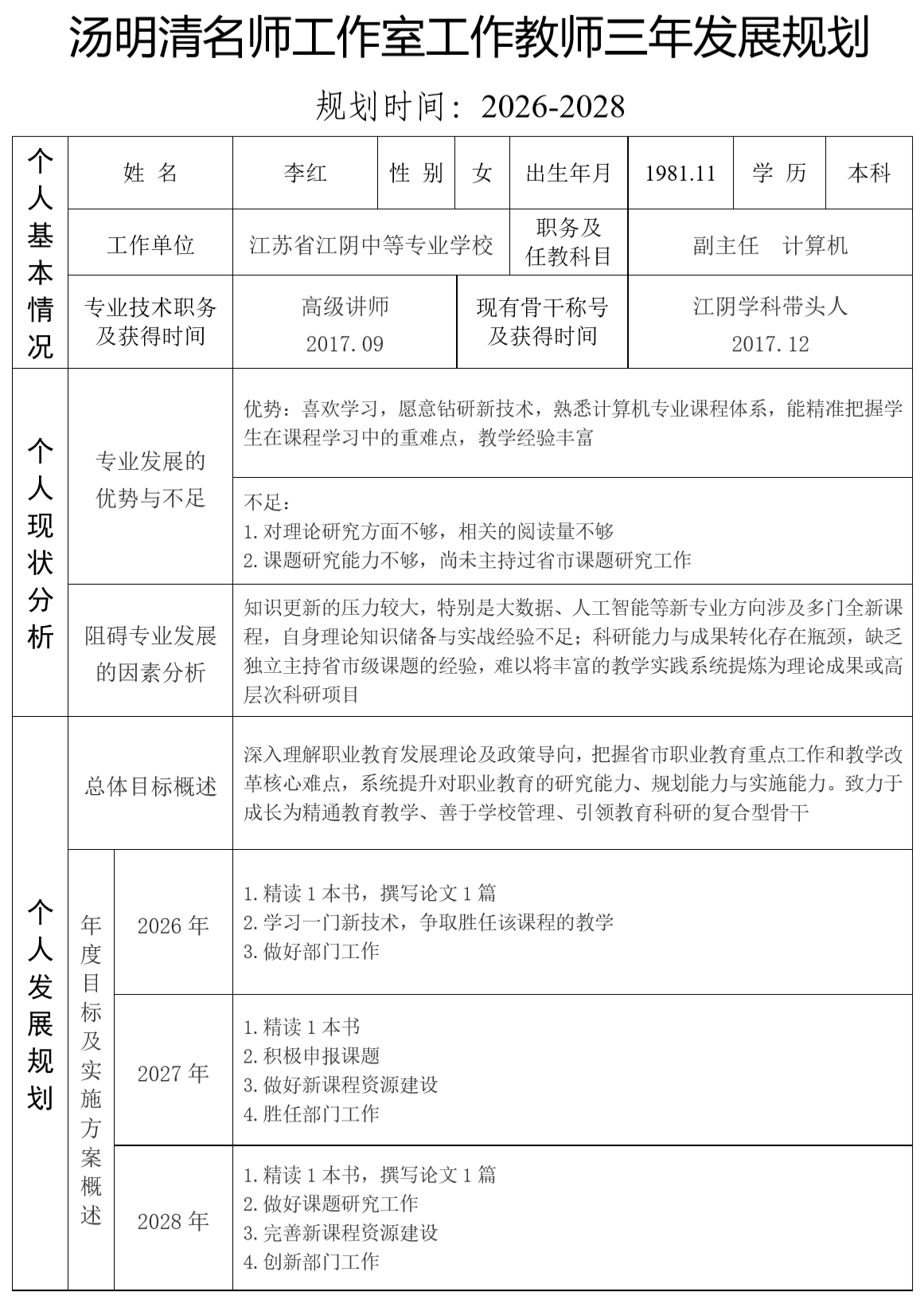 李红老师三年发展规则