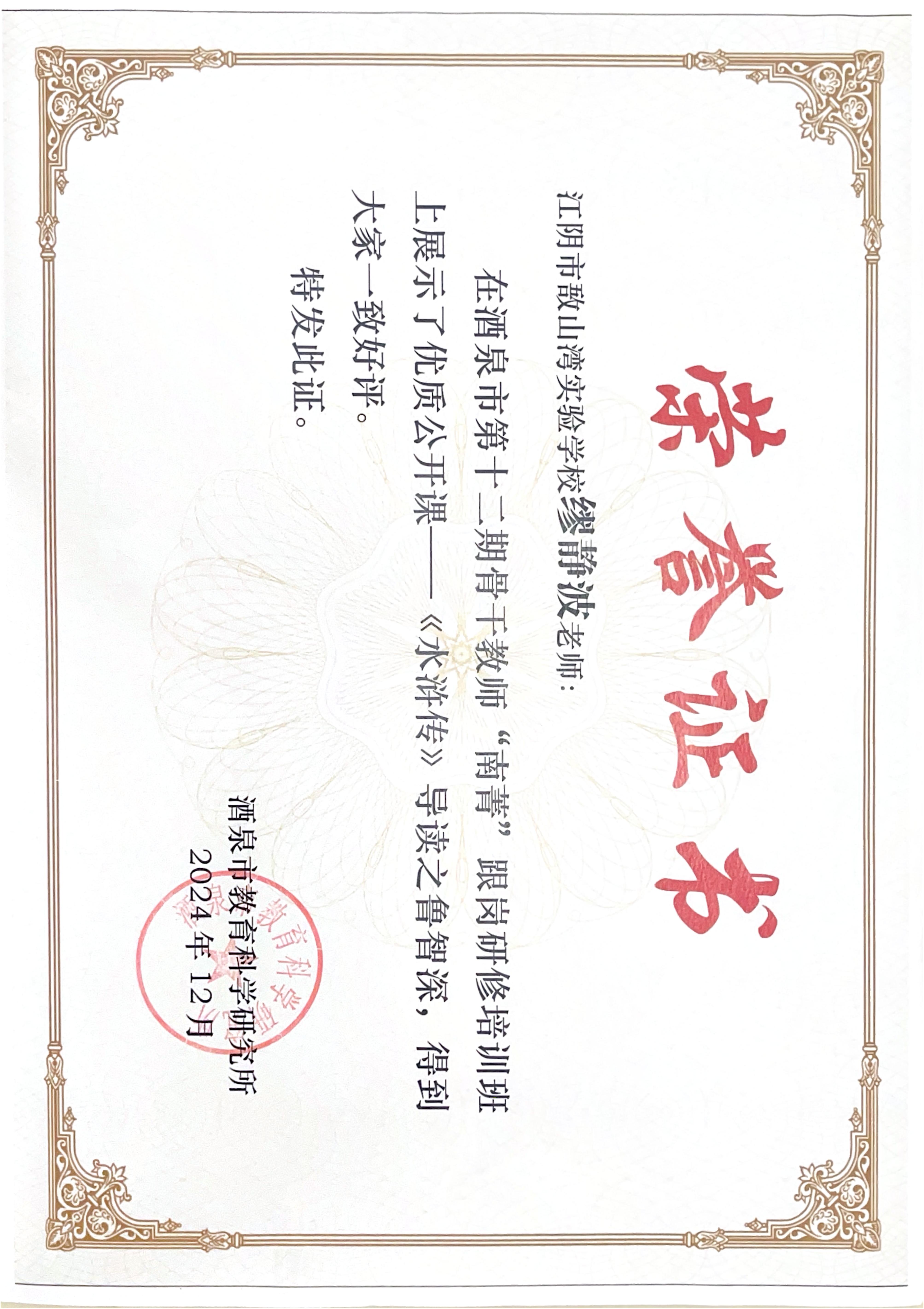缪静波 酒泉市第十二期骨干教师“南菁”跟岗研修培训班活动 优质公开课——《水浒传》导读之鲁智深 2025-09-02