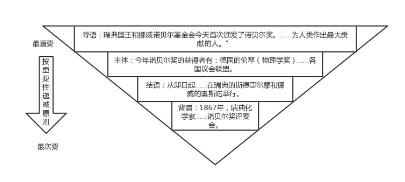自学:根据活动1的梳理,请绘制《首届诺贝尔奖颁发》的“倒金字塔”结构。