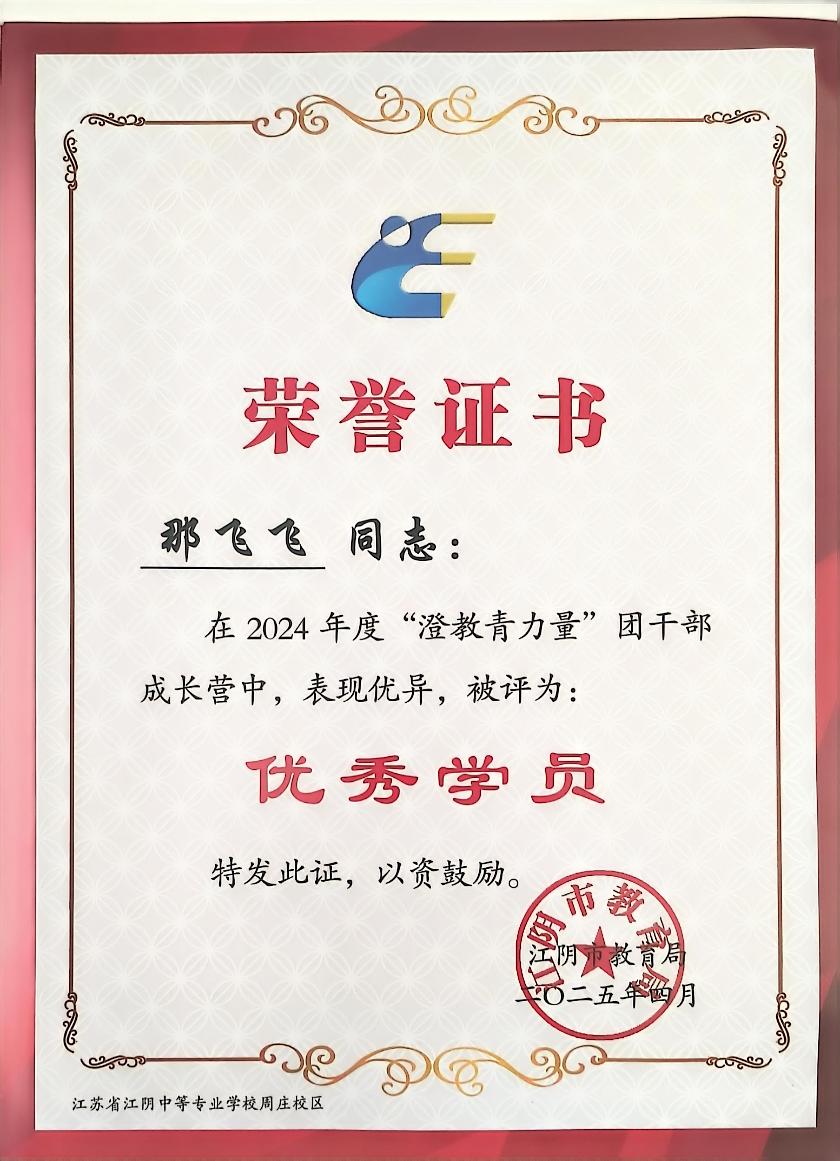 那飞飞:获评2024年度“澄教青力量”团干部成长营优秀学员