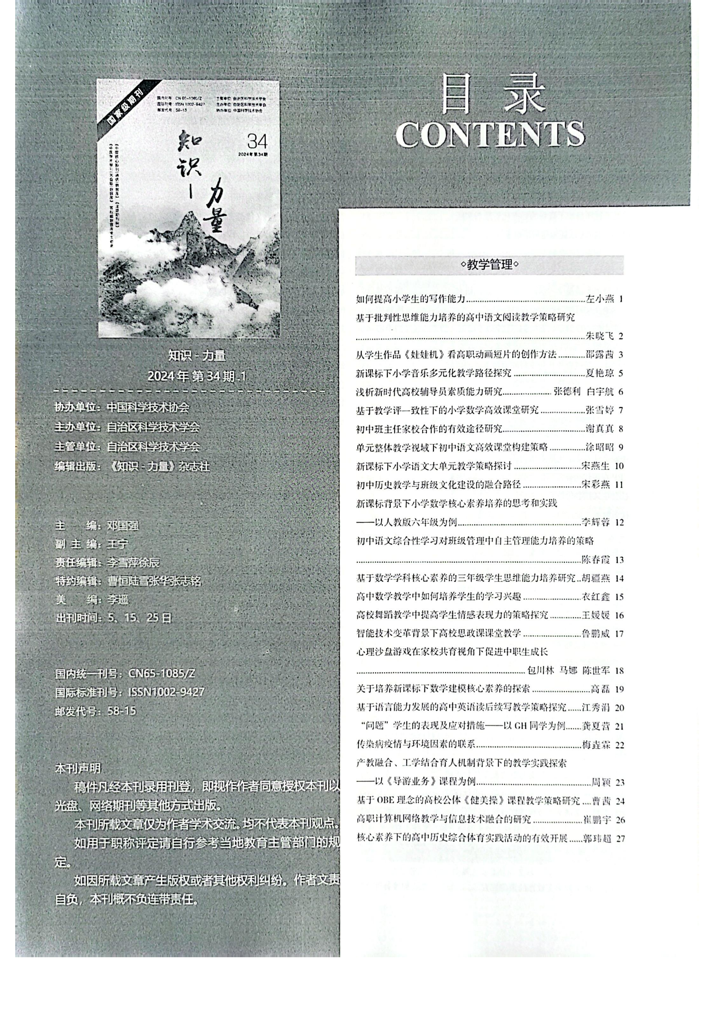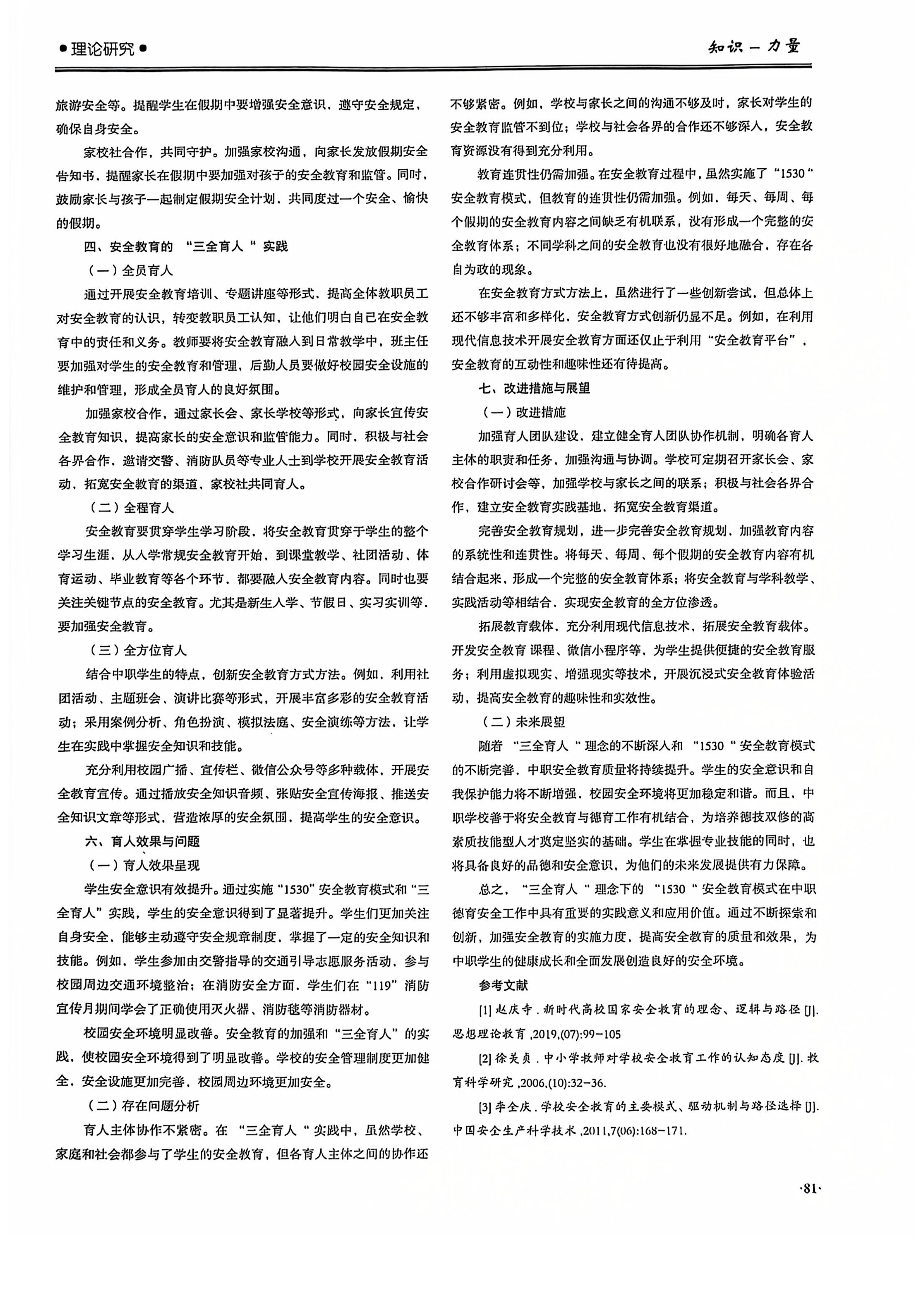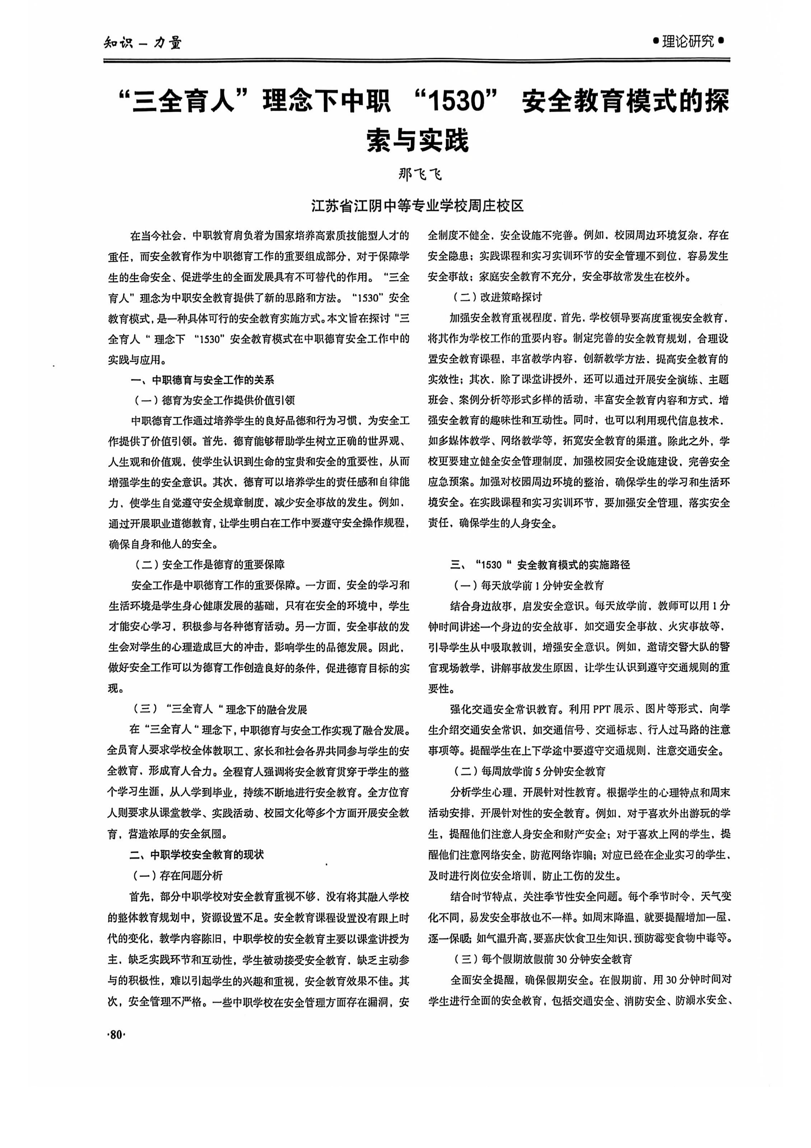 那飞飞-论文《“三全育人”理念下中职 “1530” 安全教育模式的探索与实践》发表于《知识力量》 2025-09-02