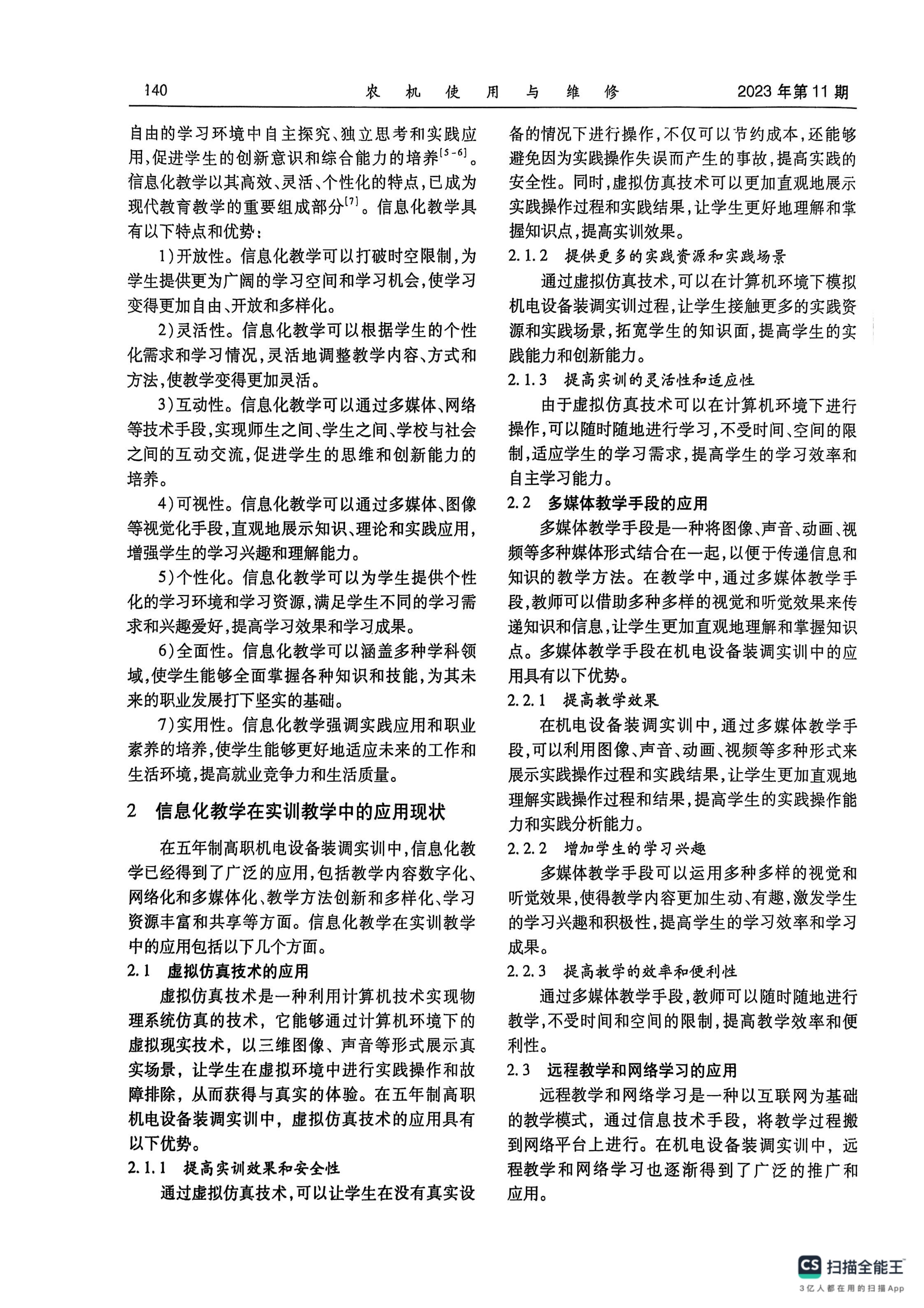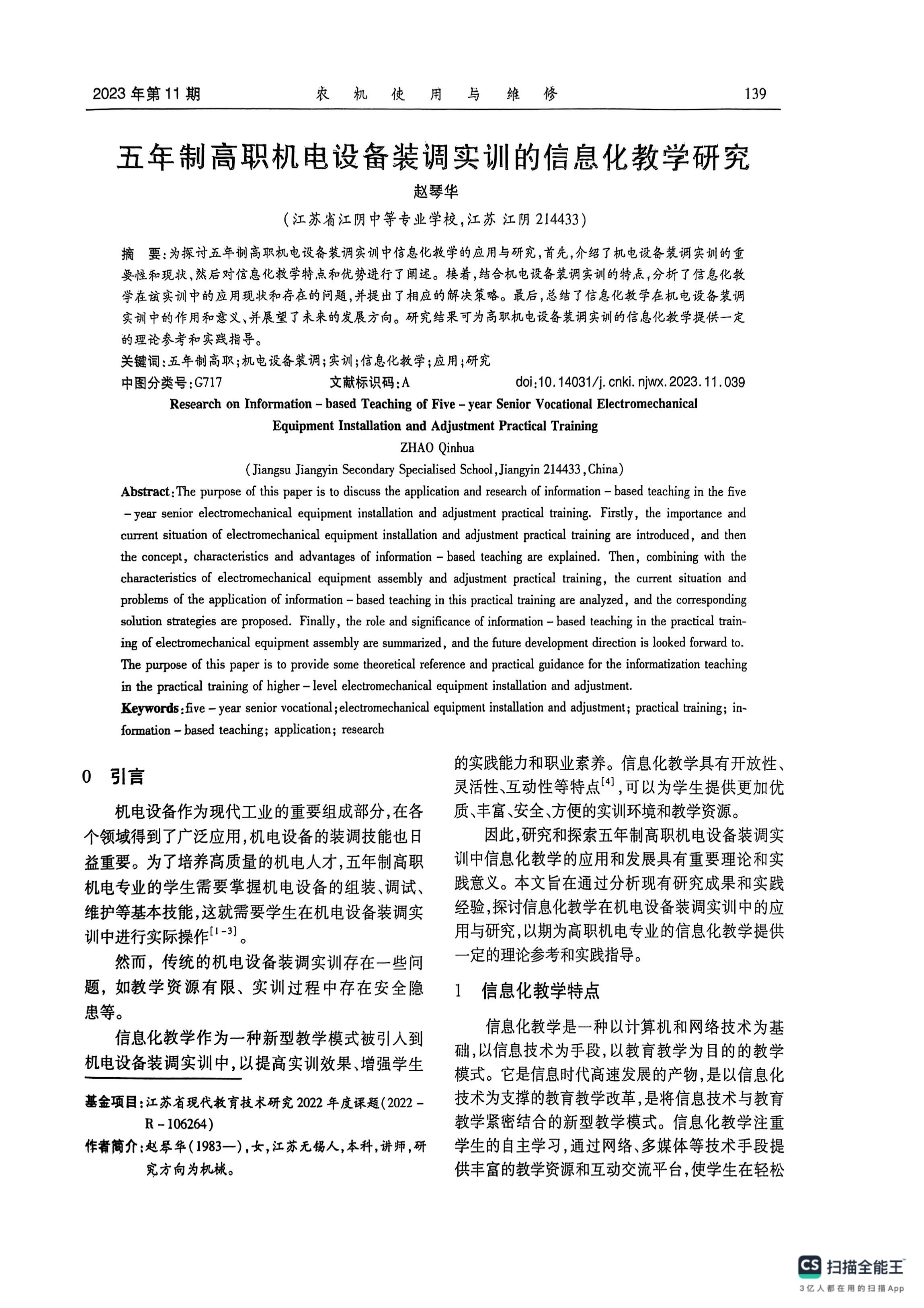 论文-赵琴华-《五年制高职机电设备装调实训的信息化教学研究》发表于《农机使用与维修》 2025-09-02