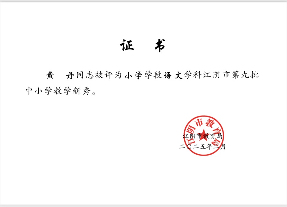 黄丹:江阴市第九批中小学教学新秀 2025-09-02