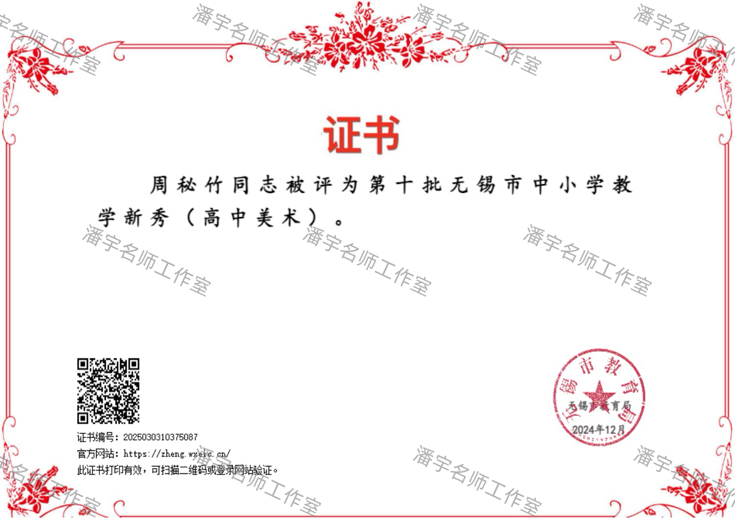 周秘竹老师被评为第十批无锡市中小学教学新秀