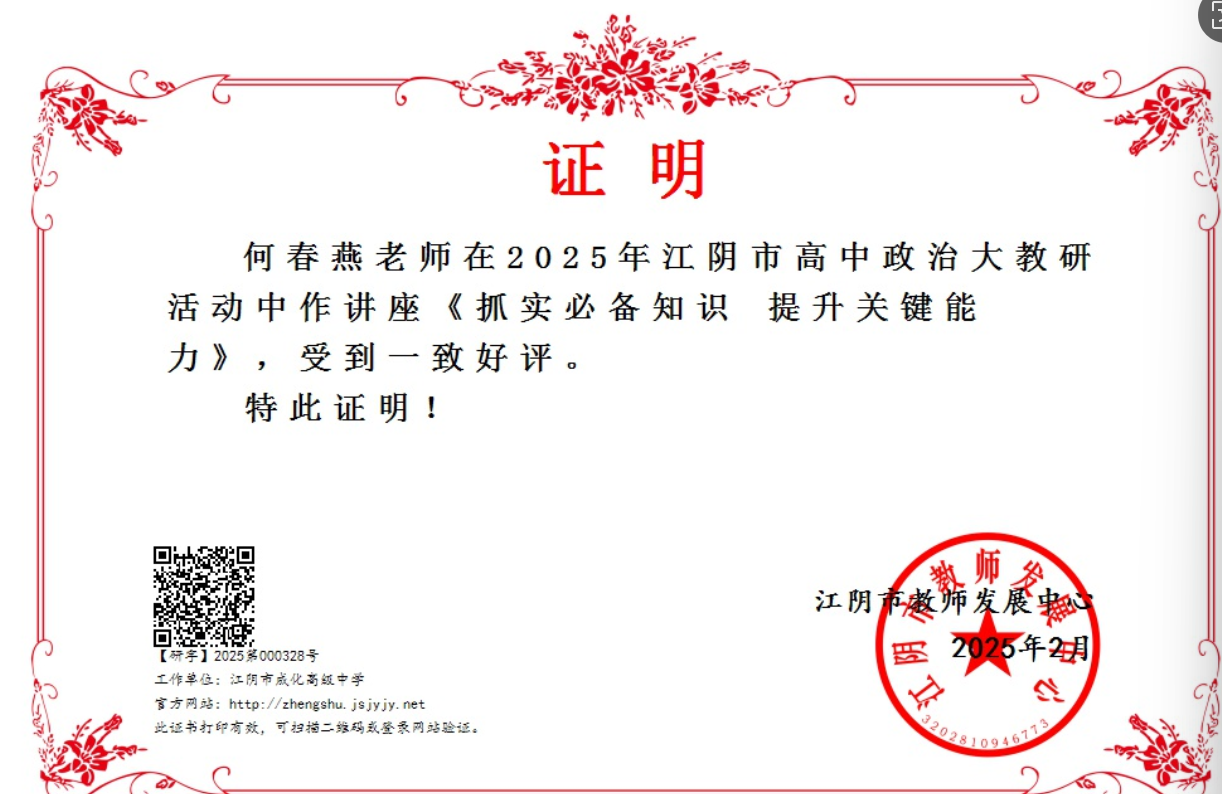 参加对象:江阴市高中政治骨干教师