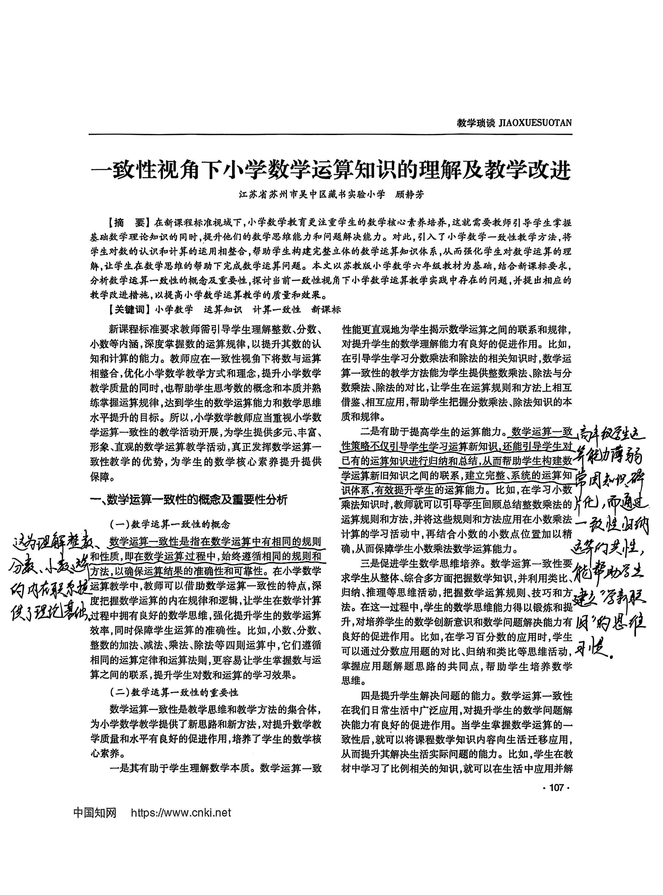 单烨推荐文章《一致性视角下小学数学运算知识的理解及教学改进》 2025-09-07
