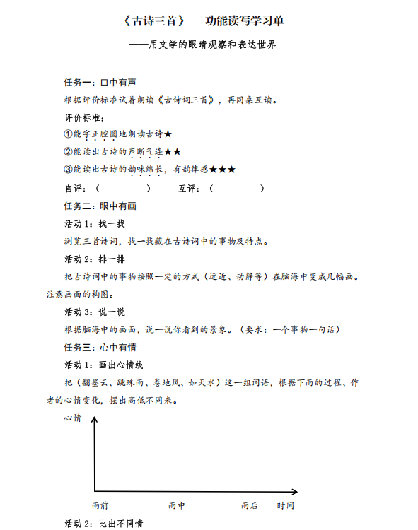 六上《古诗词三首》功能性读写学习单