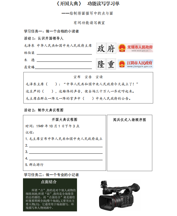 六上《开国大典》功能性读写学习单