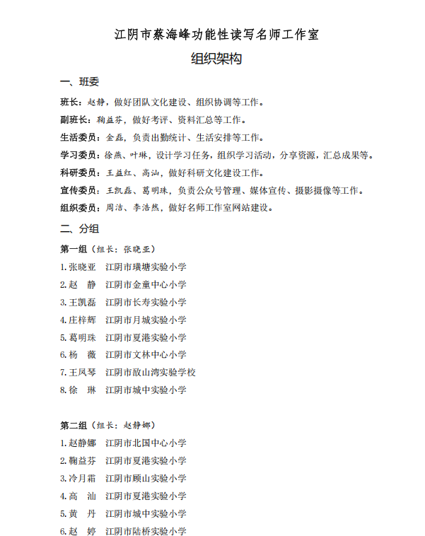 江阴市蔡海峰功能性读写名师工作室 组织架构