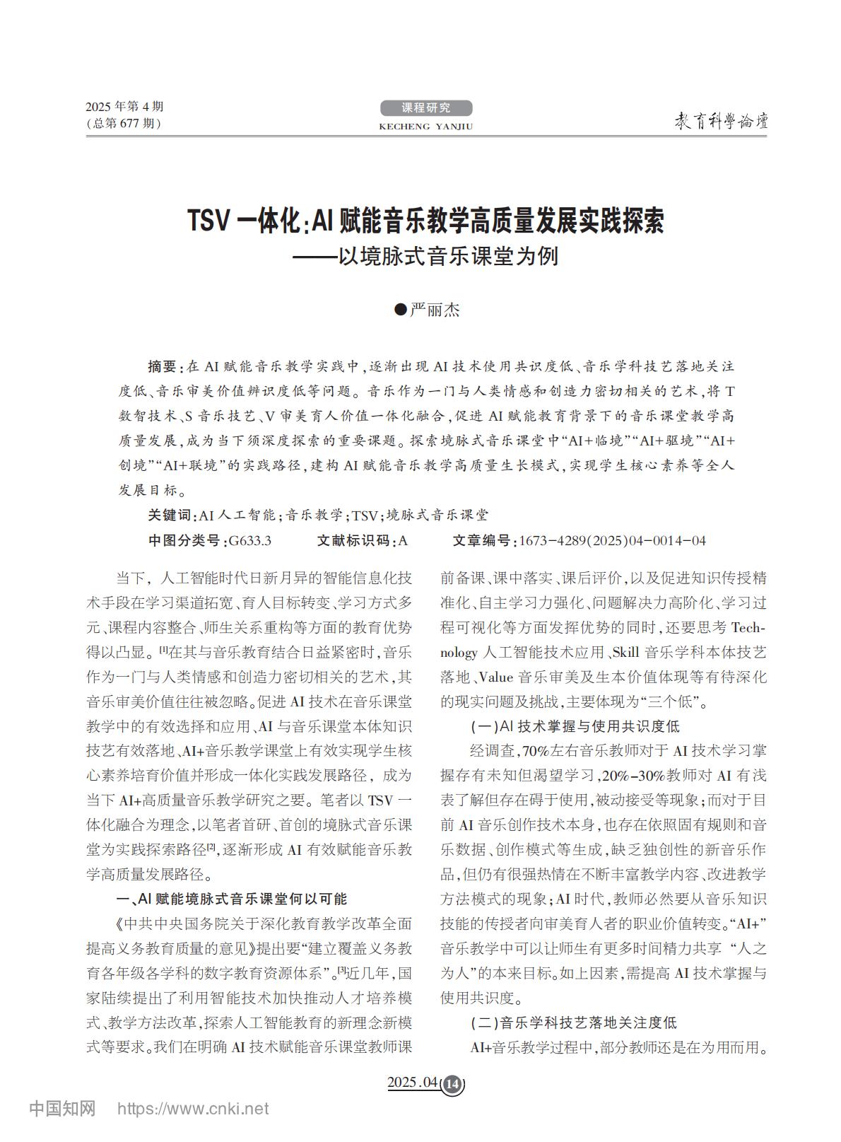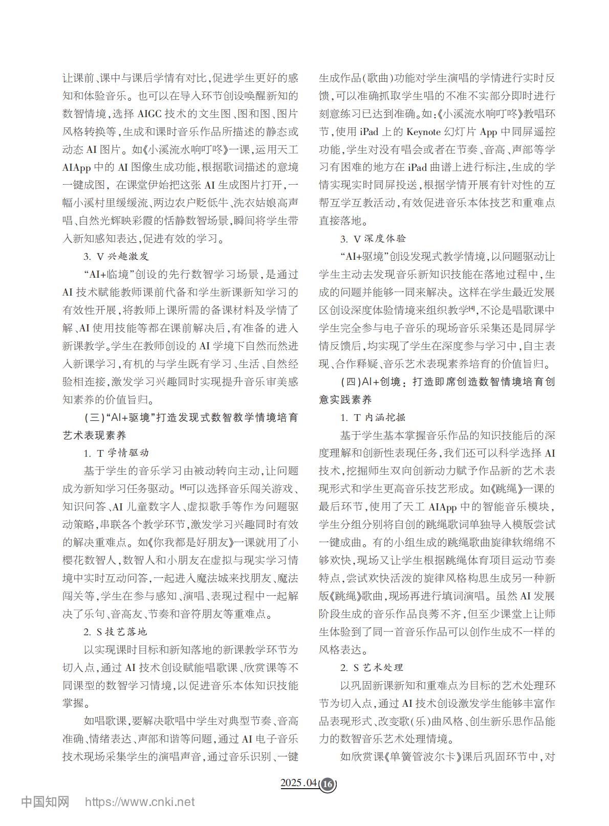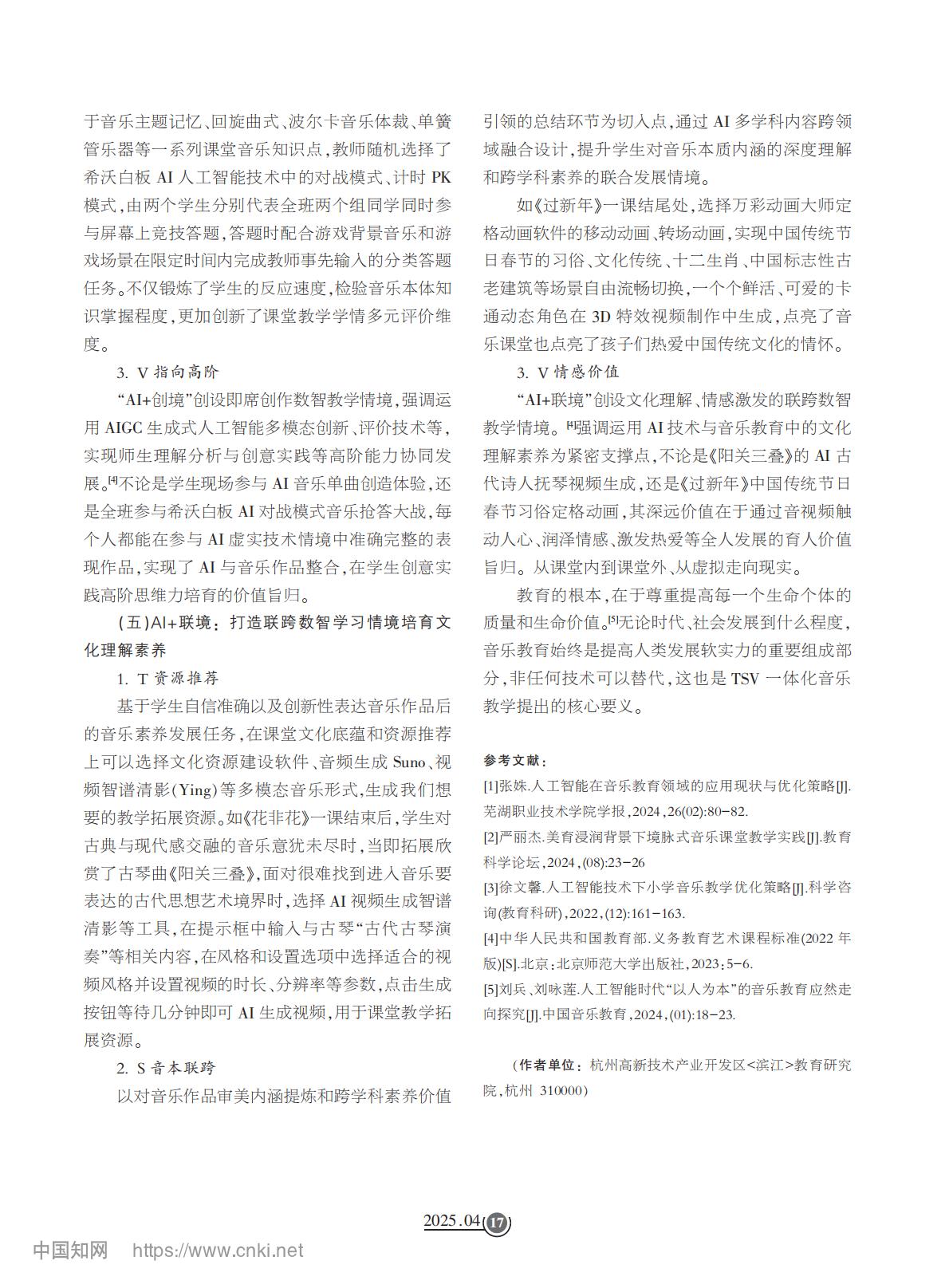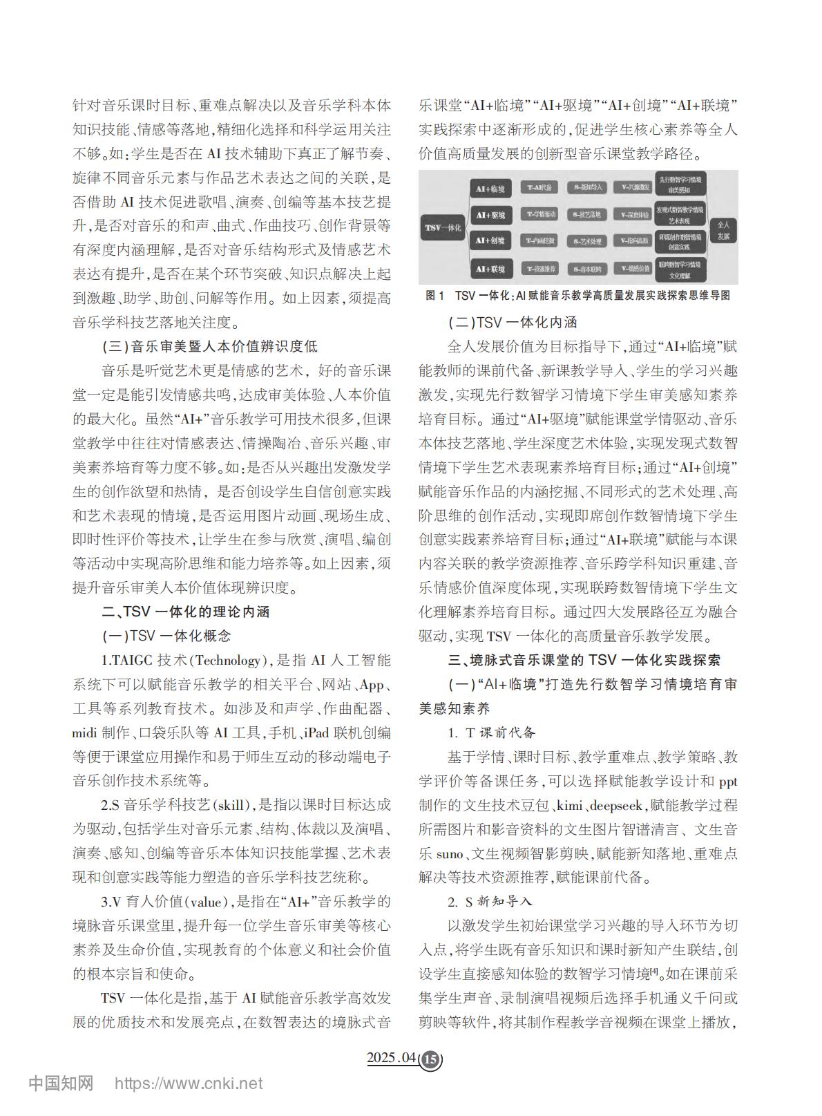 论文推荐【4】《TSV一体化:AI赋能音乐教学高质量发展实践探索——以境脉式音乐课堂为例》