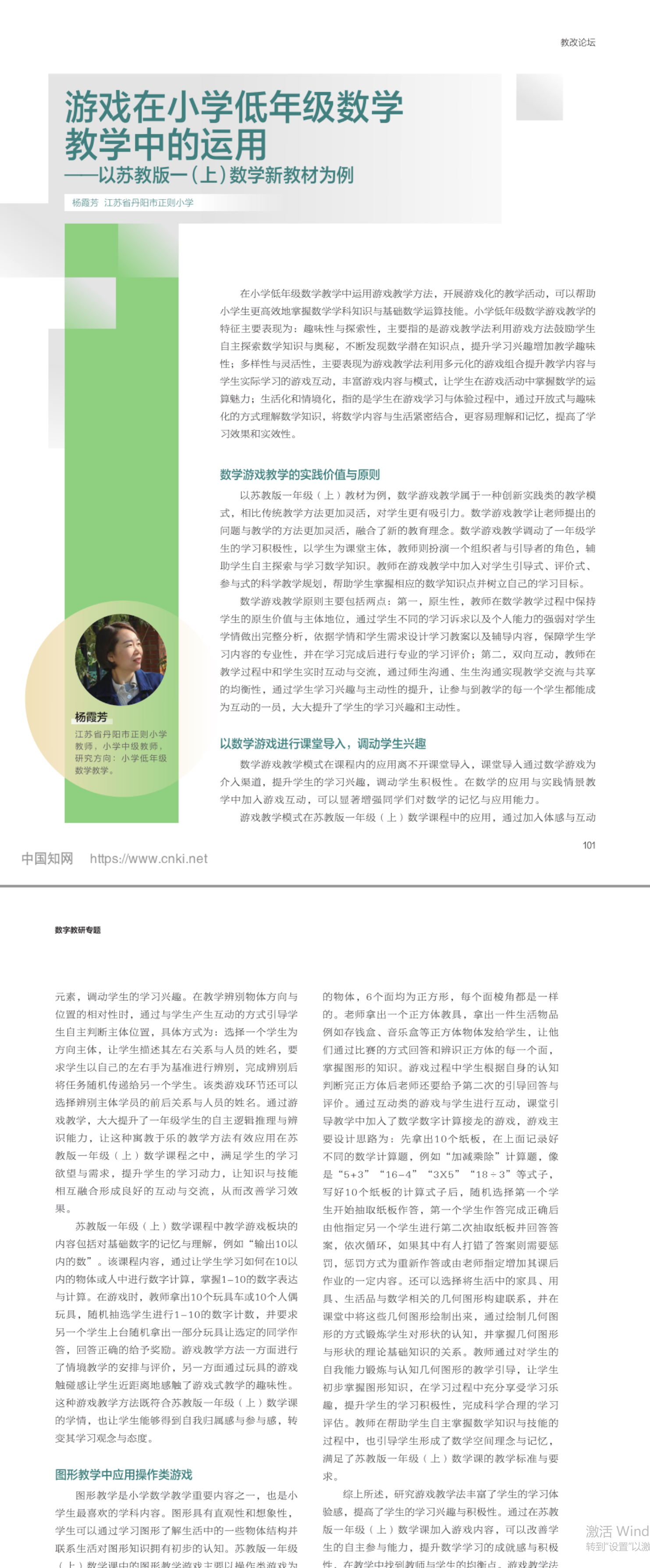 《游戏在小学低年级数学教学中的运用 —— 以苏教版一(上)数学新教材为例》一文,由杨霞芳老师精心撰写,对小学低年级数学教学中游戏的运用展开了深入且具实操性的探讨。论文开篇点明低年级学生形象思维主导、注意力易分散等特性,顺势阐述游戏融入数学教学能激发兴趣、助力知识理解与掌握,奠定了全文的理论基调。
