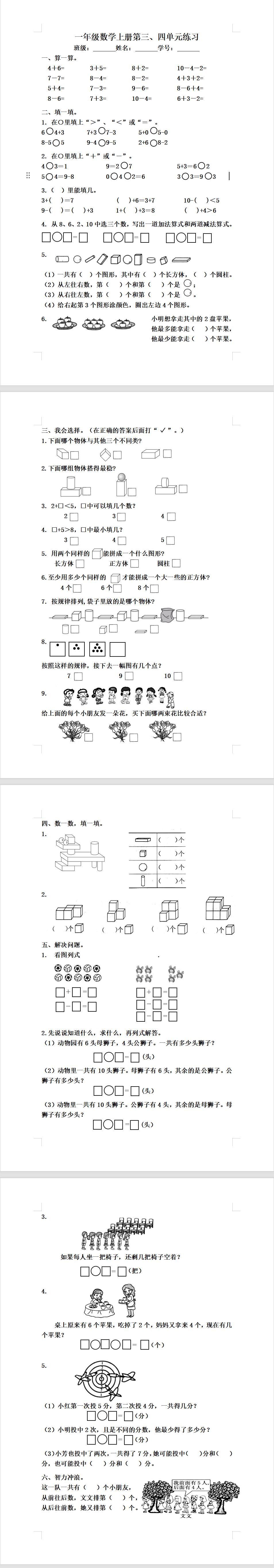 网站类目:资源共享 资源学科:数学 资源类别: 资源年级:一年级 选用情况:学科网未选用 资源内容: