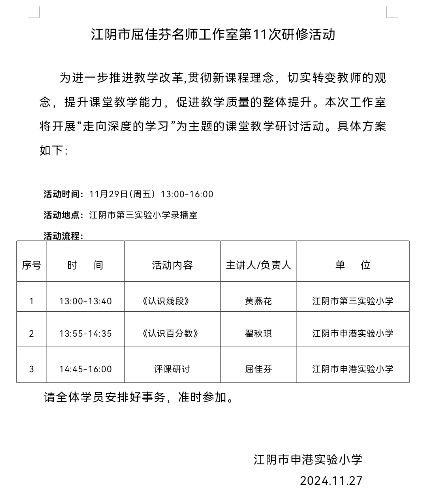 黄燕花在江阴市屈佳芬名师工作室研修活动中执教公开课《认识线段》(送教下乡) 2025-09-11