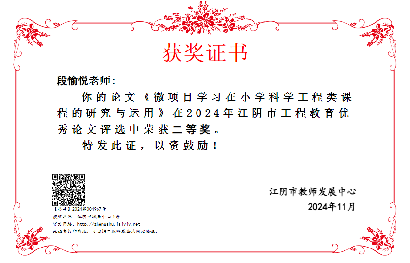江阴市工程教育优秀论文评选 段愉悦 二等奖