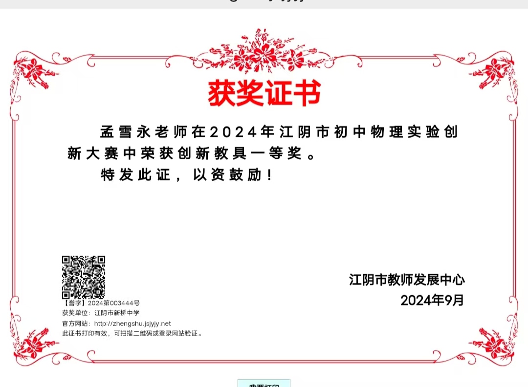 孟雪永物理实验创新大赛创新教具一等奖 2025-09-16