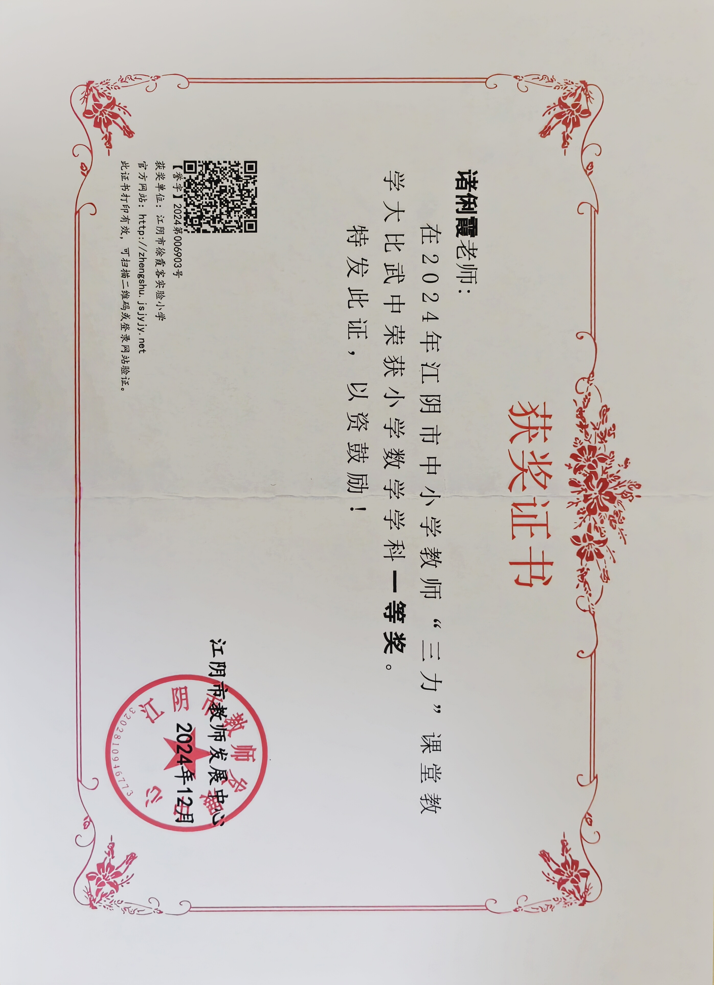 诸俐霞——执教《平均数》江阴市教学大比武一等奖