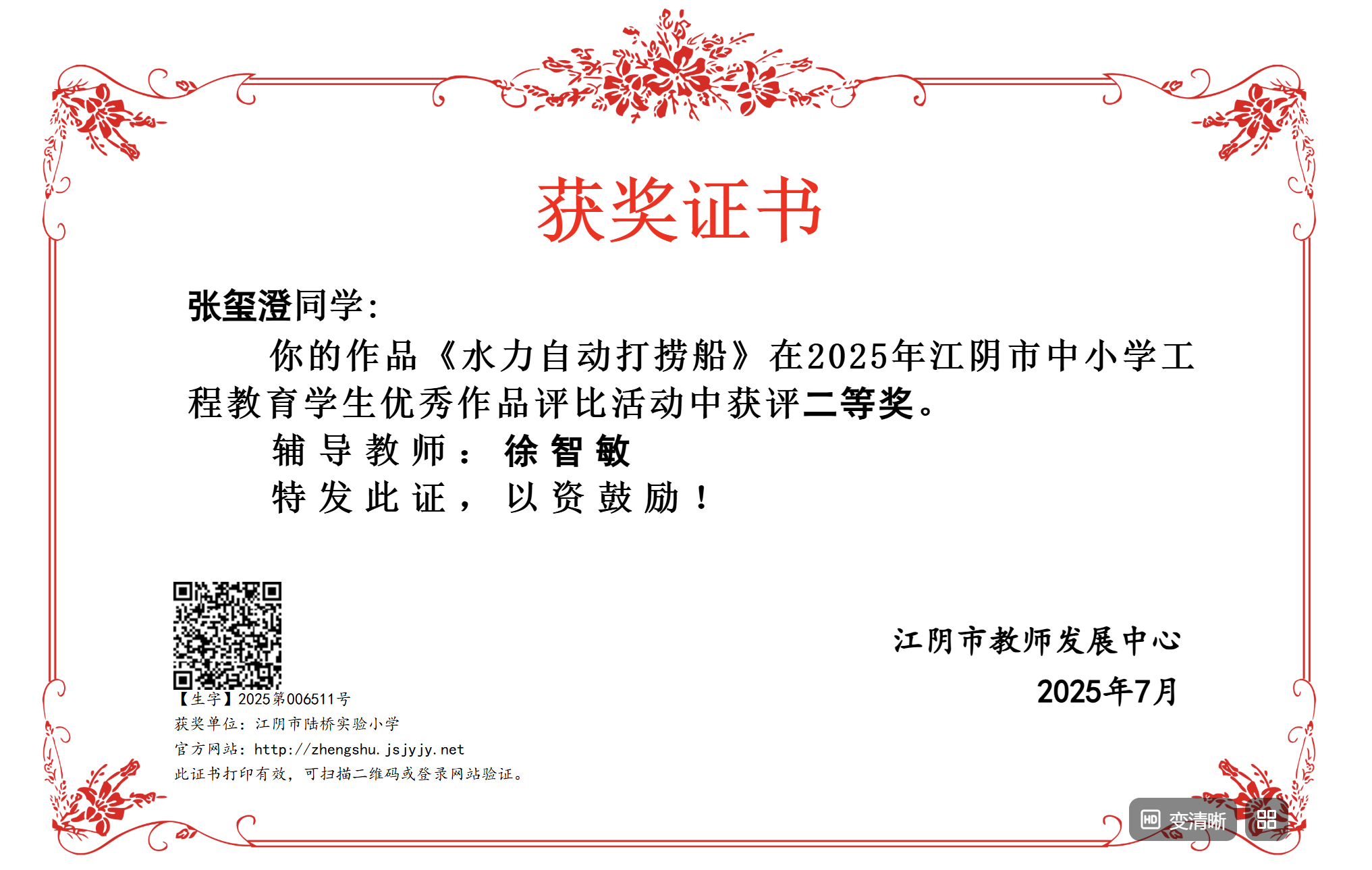 顾惠洁+严皓宇 赵偲妍 范昕宸+全国青少年科技教育成果展示大赛二等奖