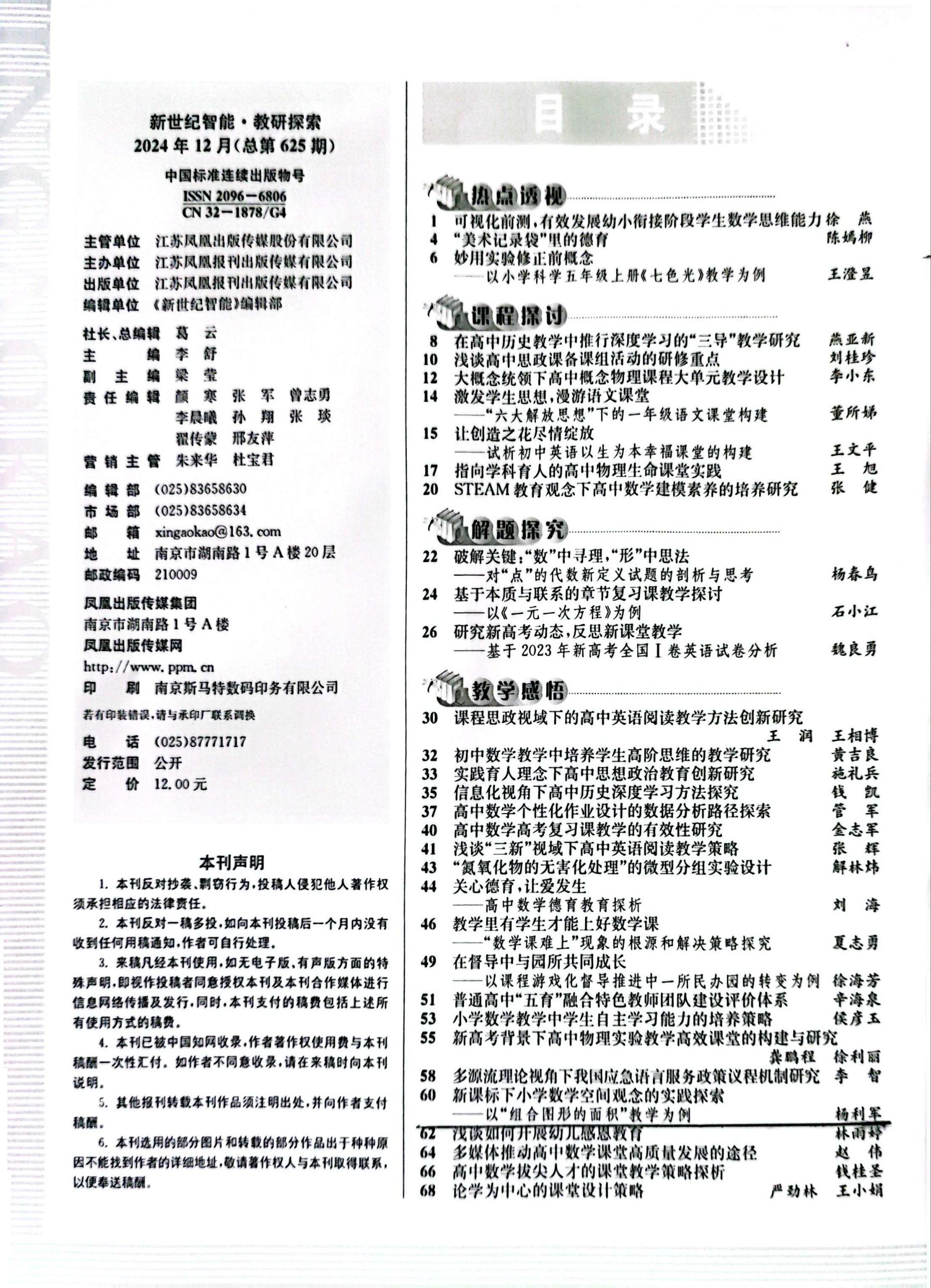 网站类目:研究成果获奖 姓名:杨利军 所在单位:江阴市华士实验小学 获奖类别: 获奖级别:省级 获奖等级: 获奖时间:2024-12-01 评比部门: 发表刊物:《新世界智能》 刊物级别:省级 发表时间:2024-12-01