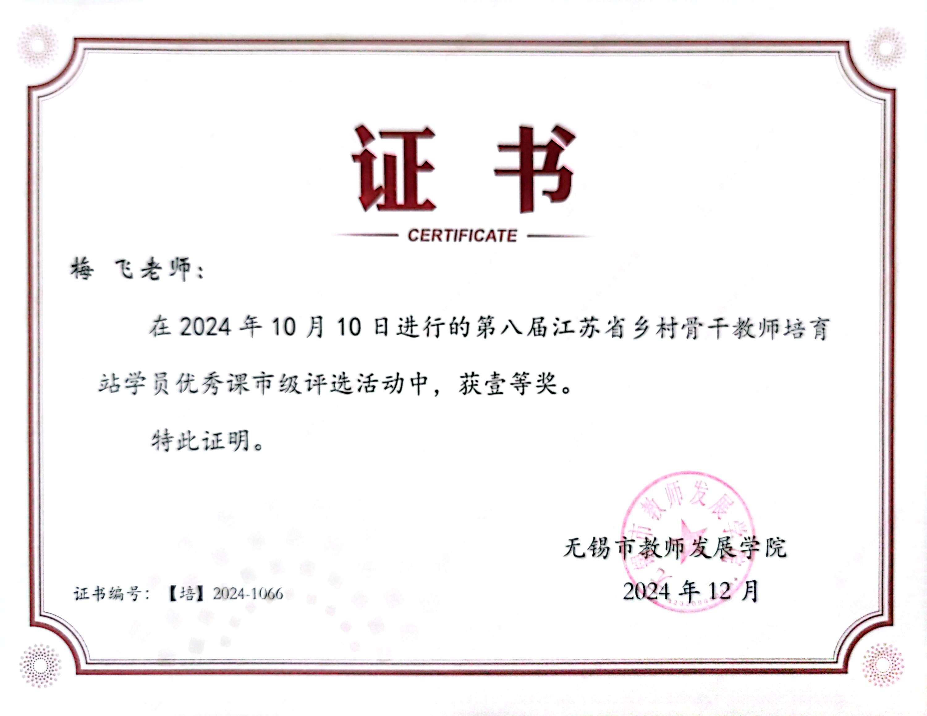 第八届江苏省乡村骨干教师培育站学员优秀课一等奖
