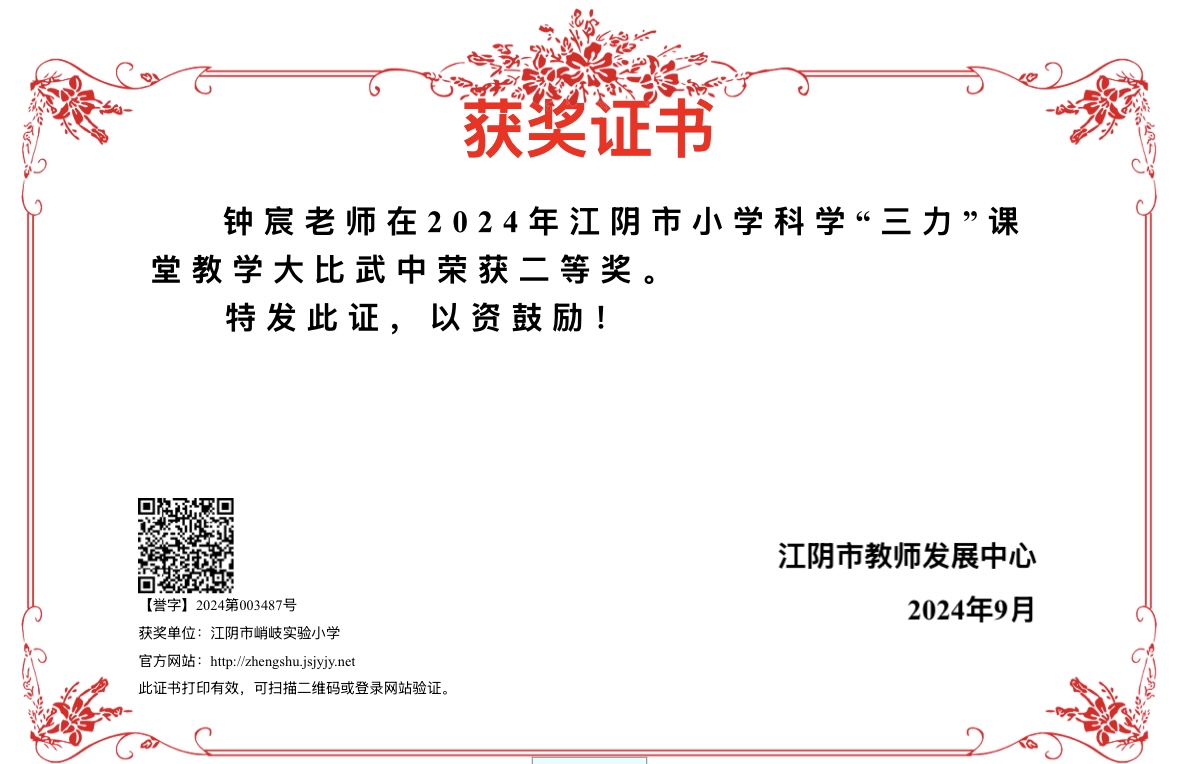 江阴市三力课堂教学大比武+钟宸+二等奖