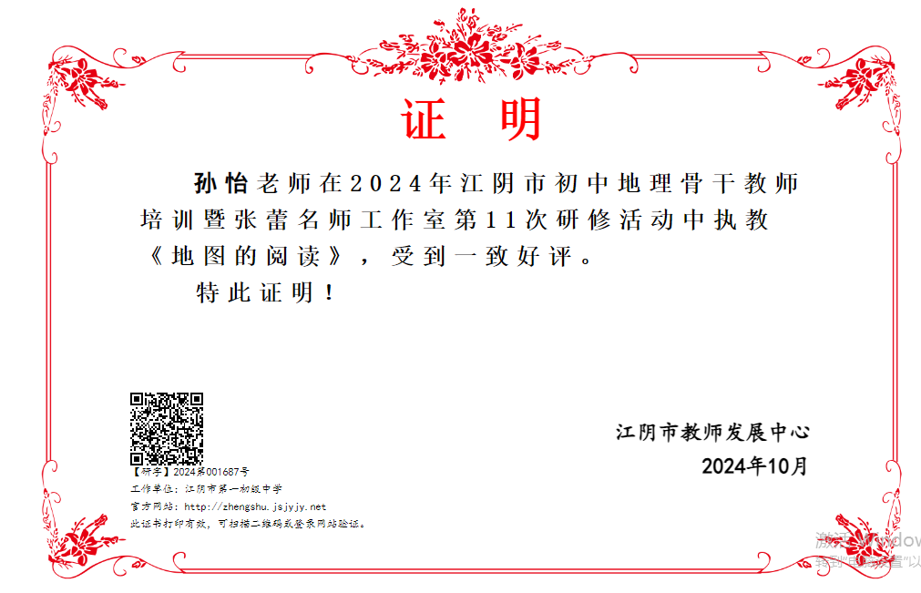 孙怡开设江阴市级公开课《地图的阅读》