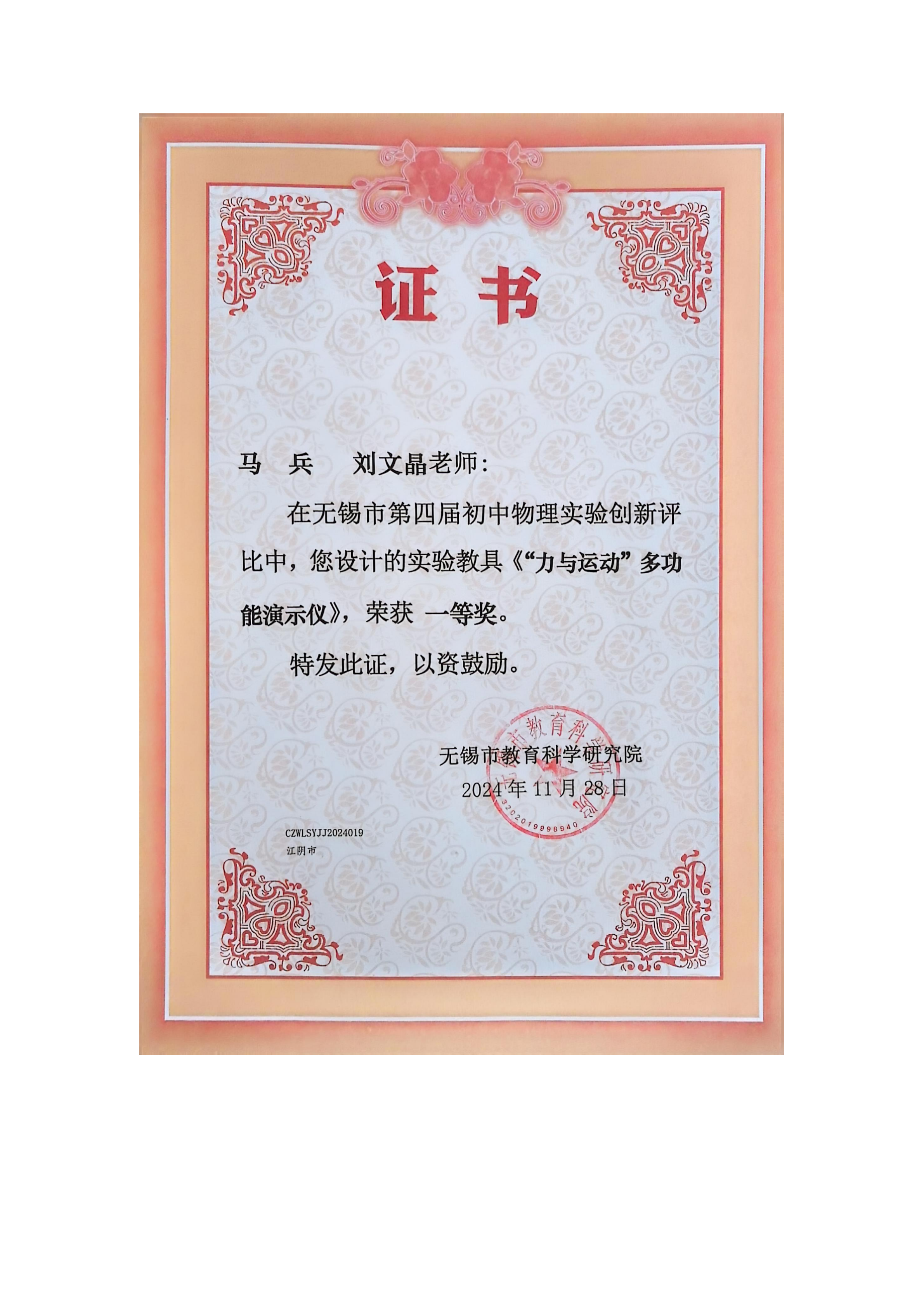 无锡市第四届初中物理实验创新评比一等奖