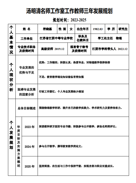 符晓磊三年个人规划