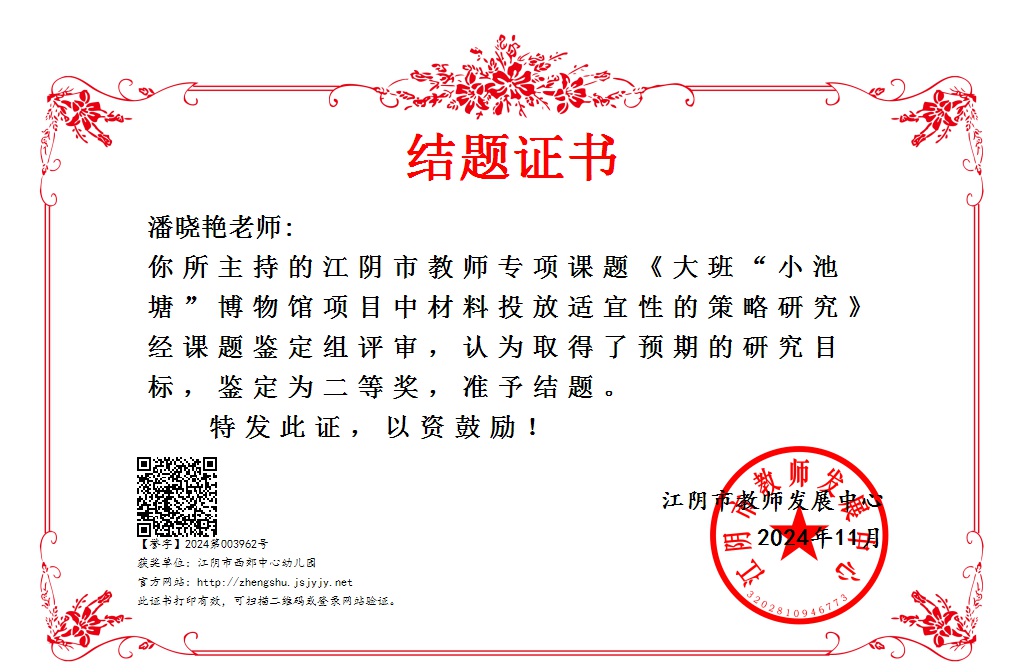 潘晓燕 江阴市教师个人专项课题 二等奖