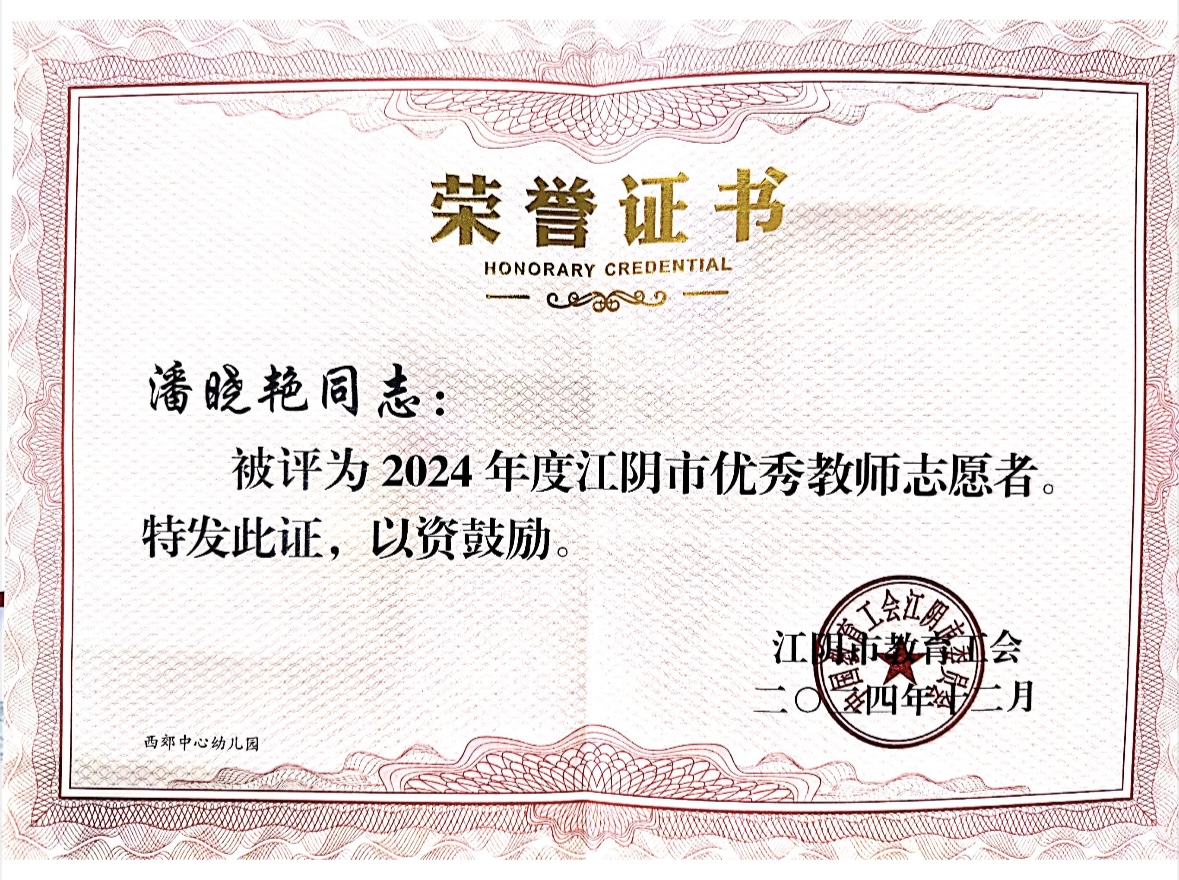 潘晓艳同志被评为2024年度江阴市优秀教师志愿者 2025-09-17