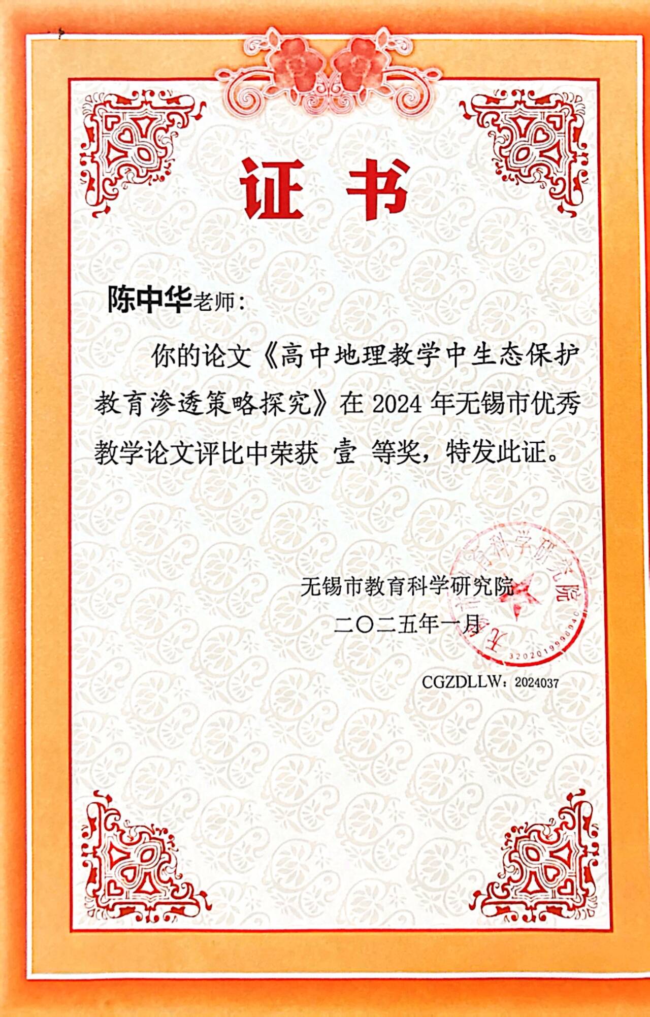 获奖类别:无锡市优秀教学论文评比