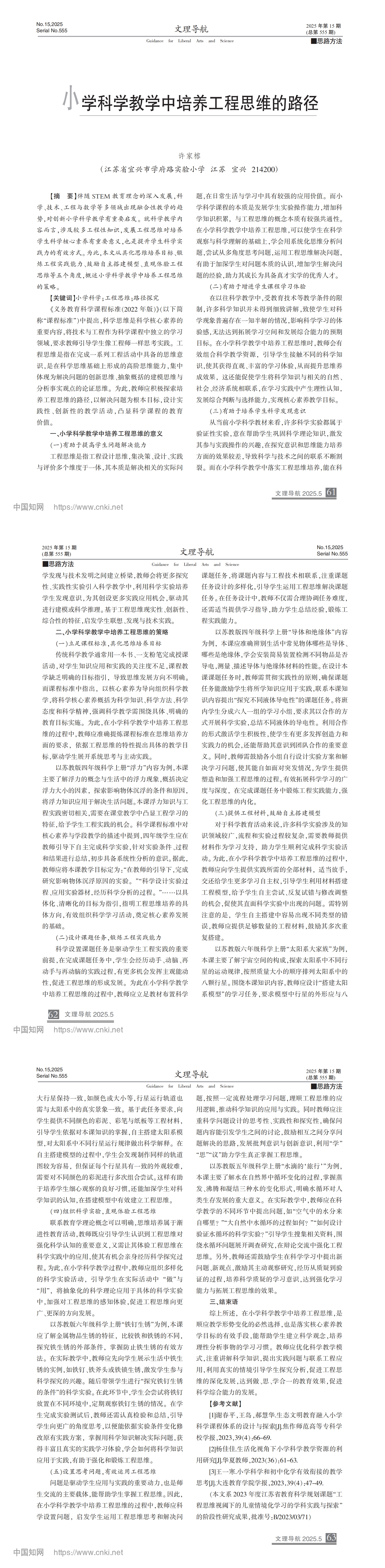 包永芳推荐+《小学科学教学中培养工程思维的路径》