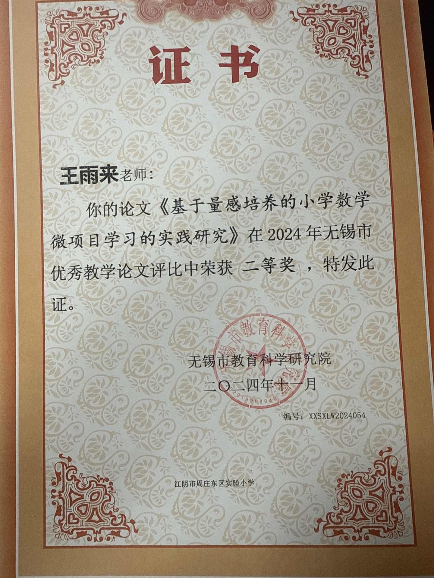 王雨来无锡市教育科研论文评比二等奖 2025-09-17