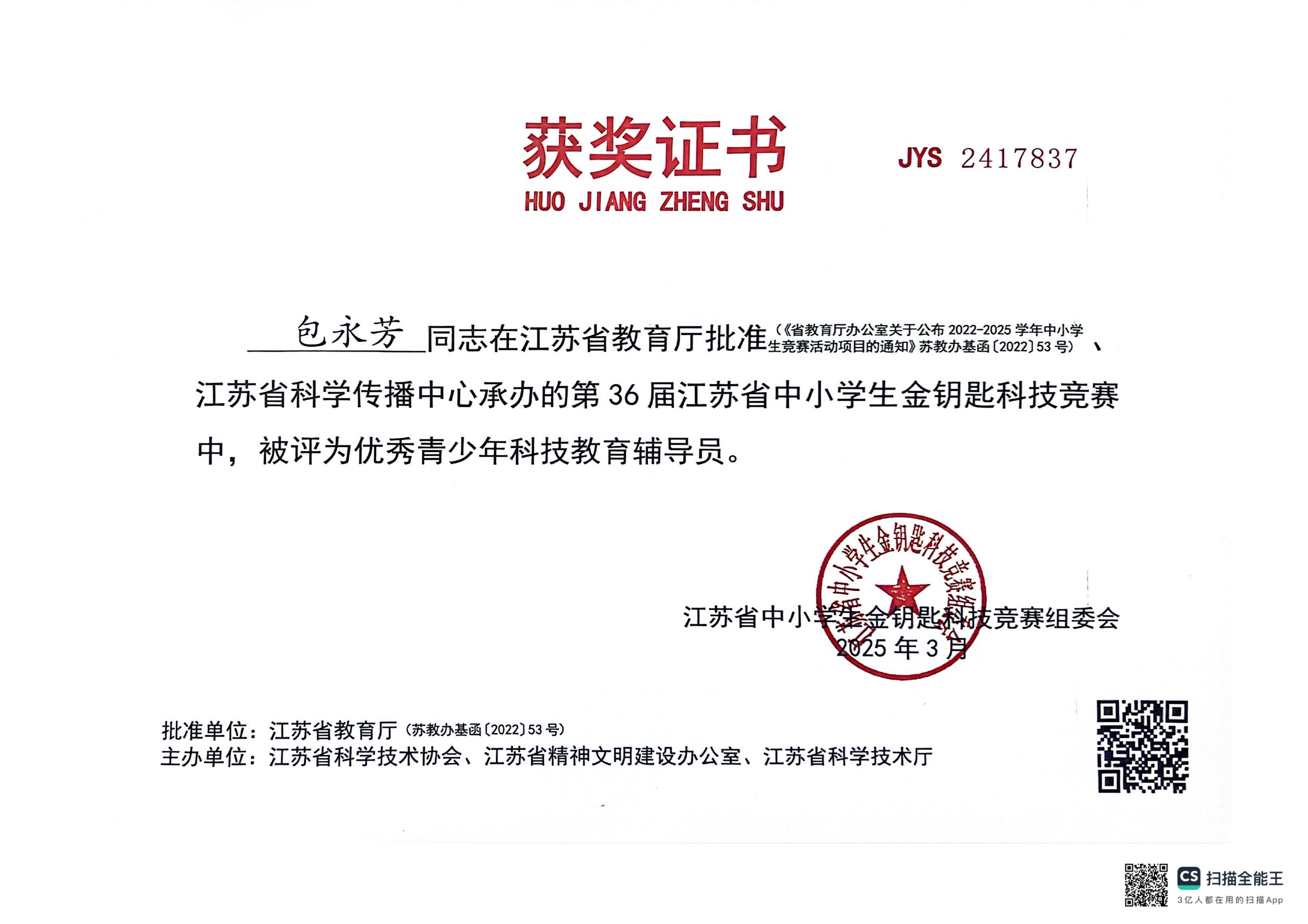 包永芳+张函铭+全国青少年科技教育成果展示大赛三等奖