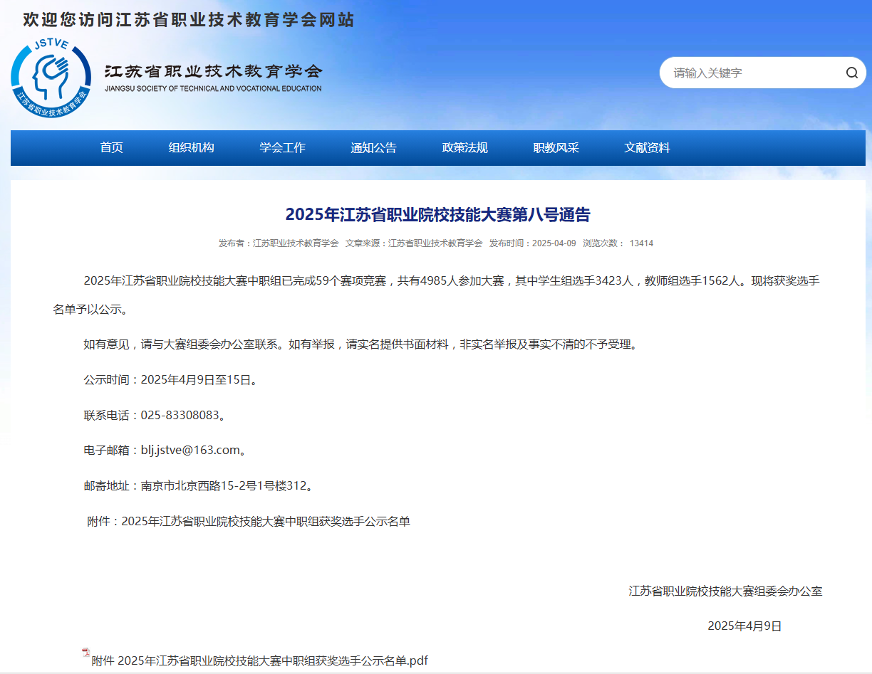 龚文飚老师参加2025江苏省技能大赛获得教师组一等奖 2025-09-17