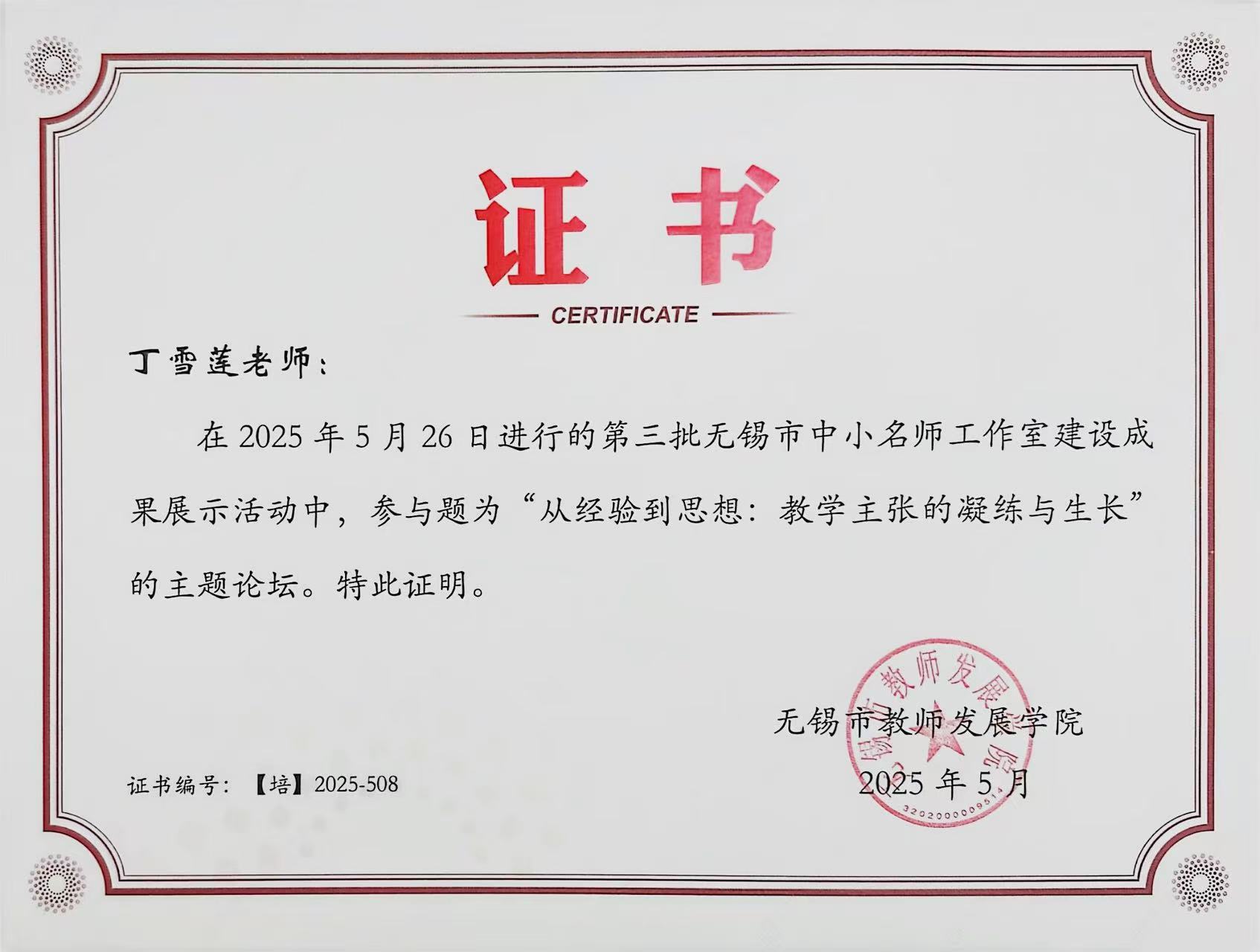 丁雪莲无锡市级主题论坛发言《从经验到思想:教学主张的凝练与生长》 2025-09-17
