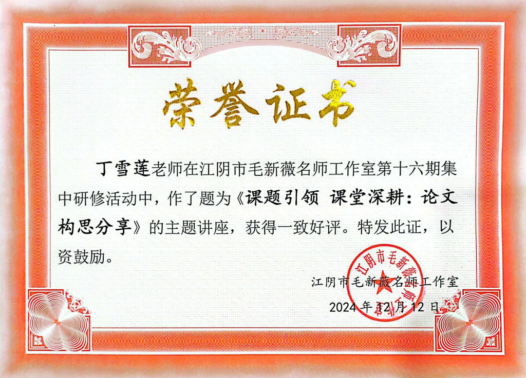 丁雪莲江阴市级专题讲座《课题引领 课堂深耕:论文构思分享》