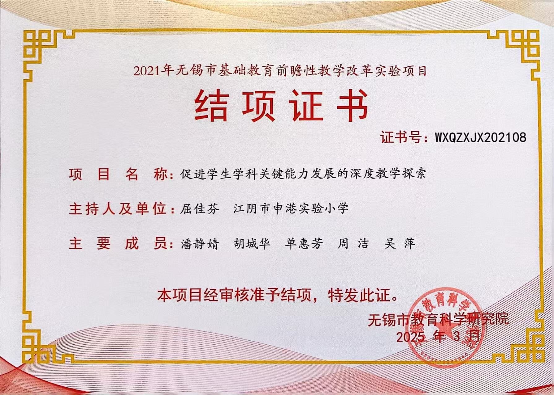 潘静婧参与2021年无锡市基础教育前瞻性教学改革实验项目顺利结项