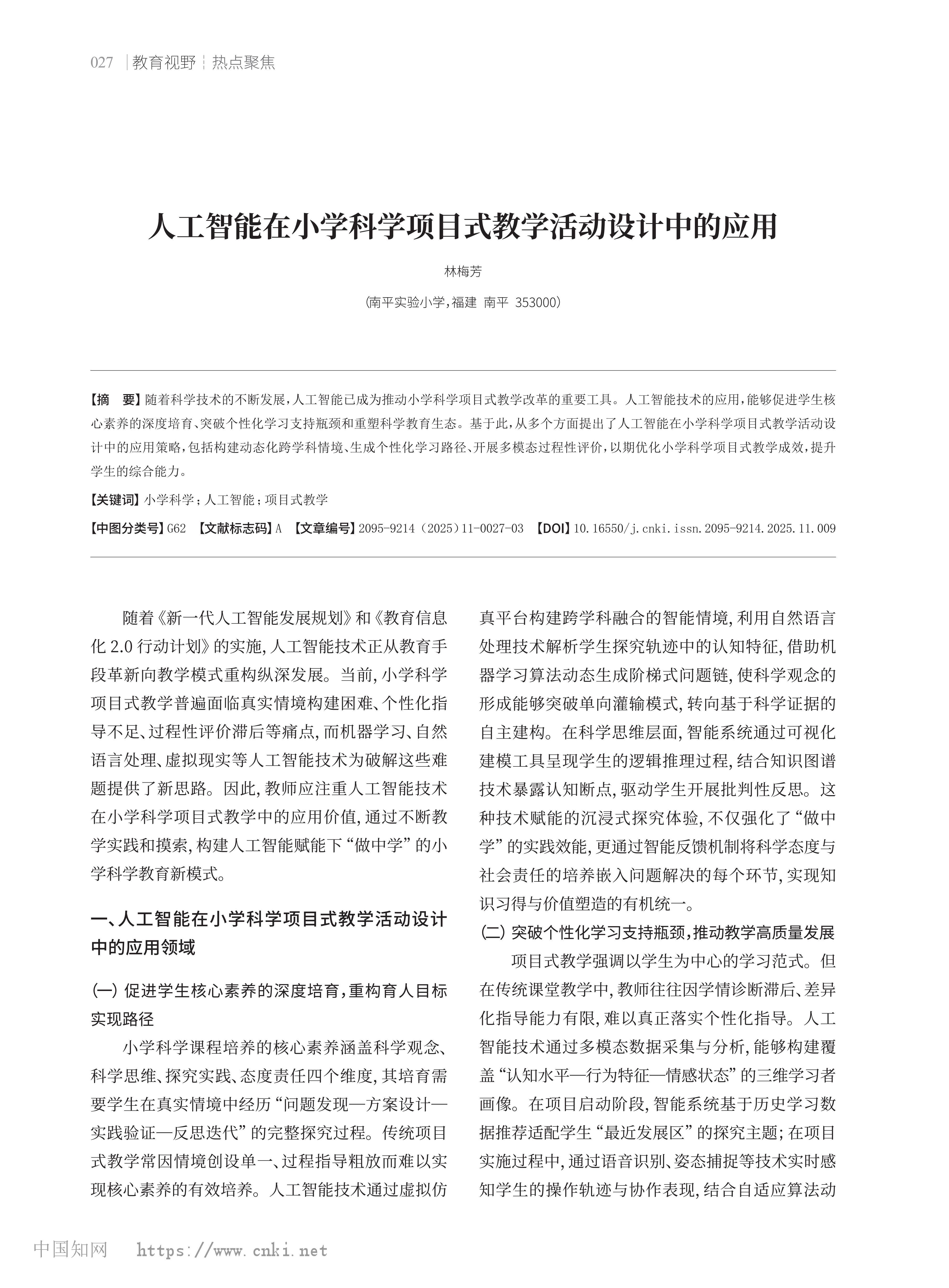 薛昌明推荐+《人工智能在小学科学项目式教学活动设计中的应用》 2025-09-17
