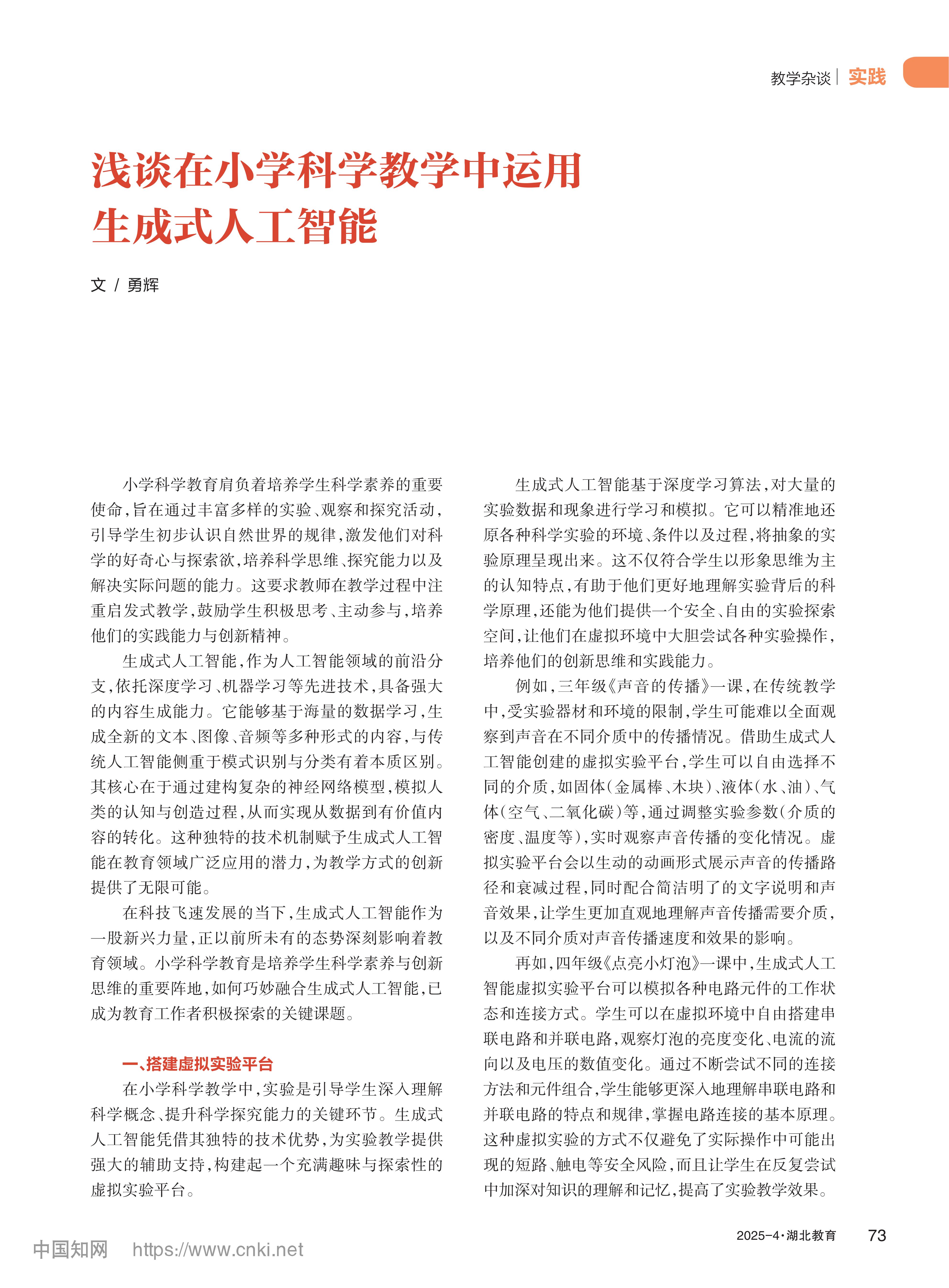 薛昌明推荐+《浅谈在小学科学教学中运用生成式人工智能》