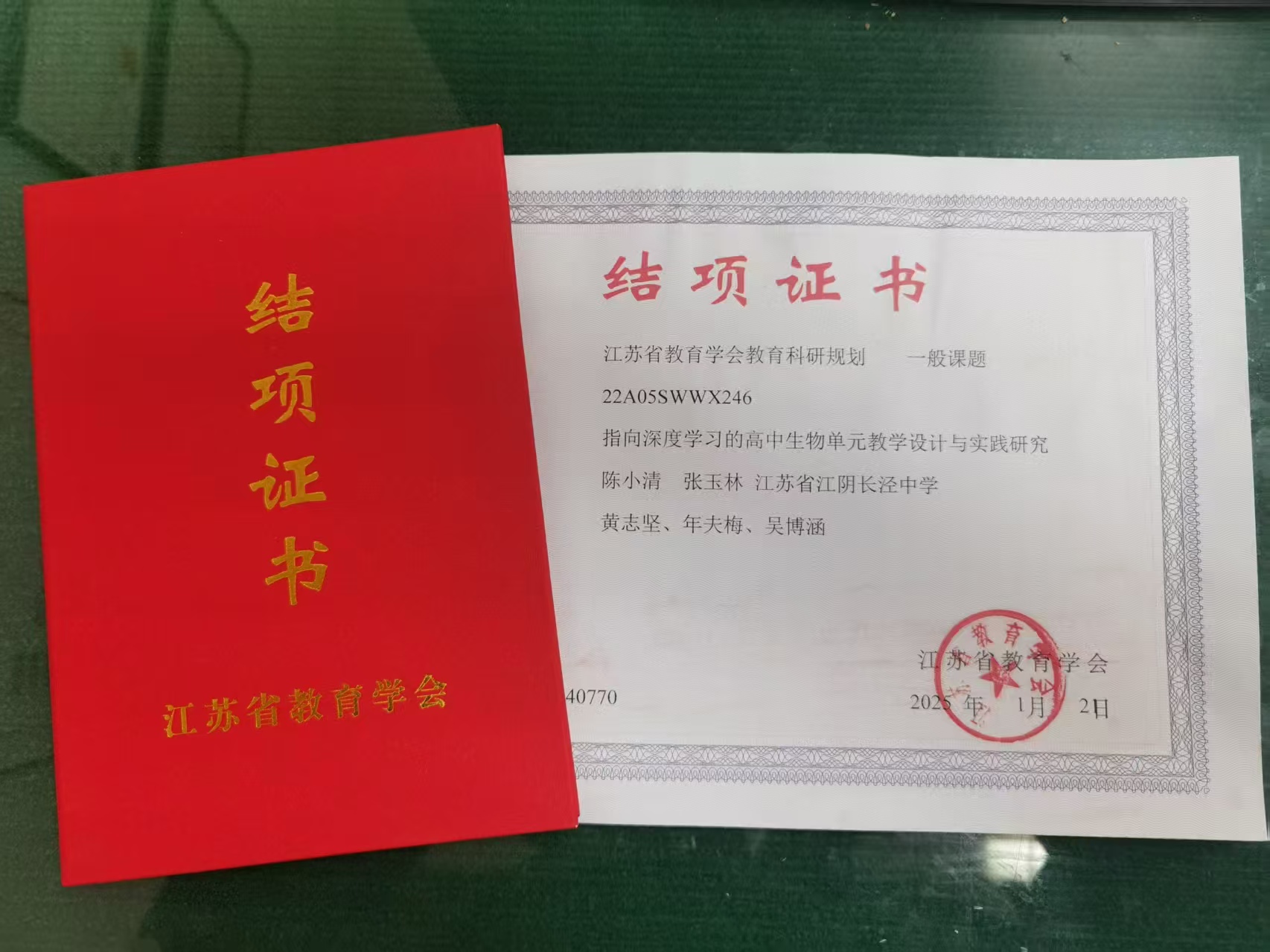江苏省教育学会教育科研规划课题《指向深度学习的高中生物单元教学设计与实践研究》结题 2025-09-18