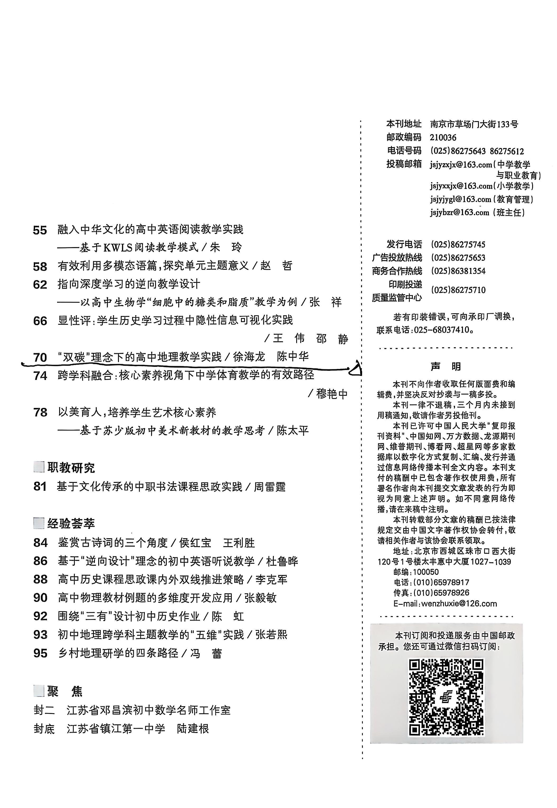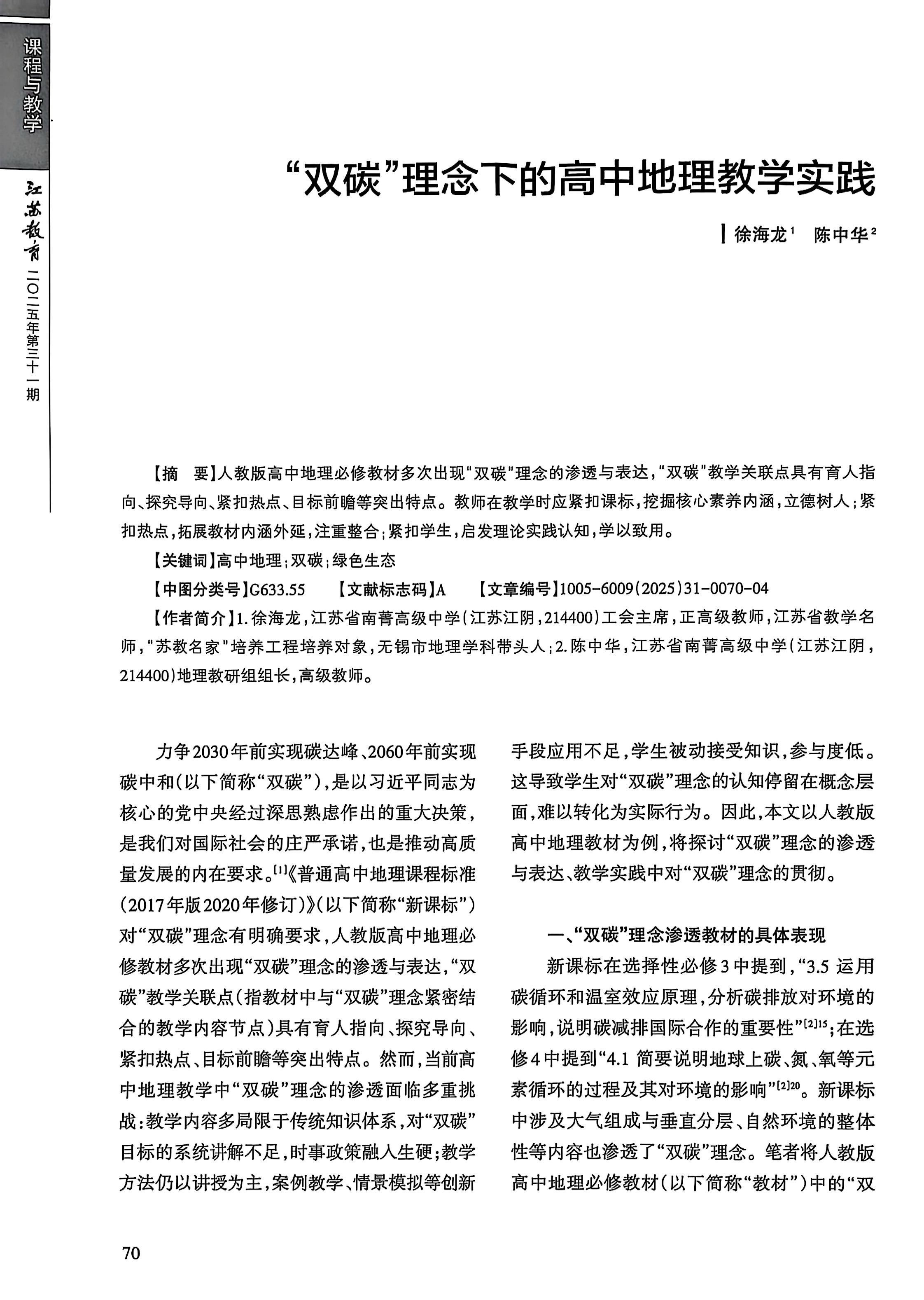 工作室主持人徐海龙发表论文《“双碳”理念下的高中地理教学实践》