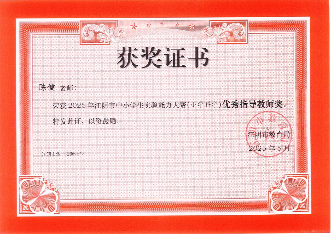 陈健-2025年江阴市中小学生实验能力大赛优秀指导教师奖